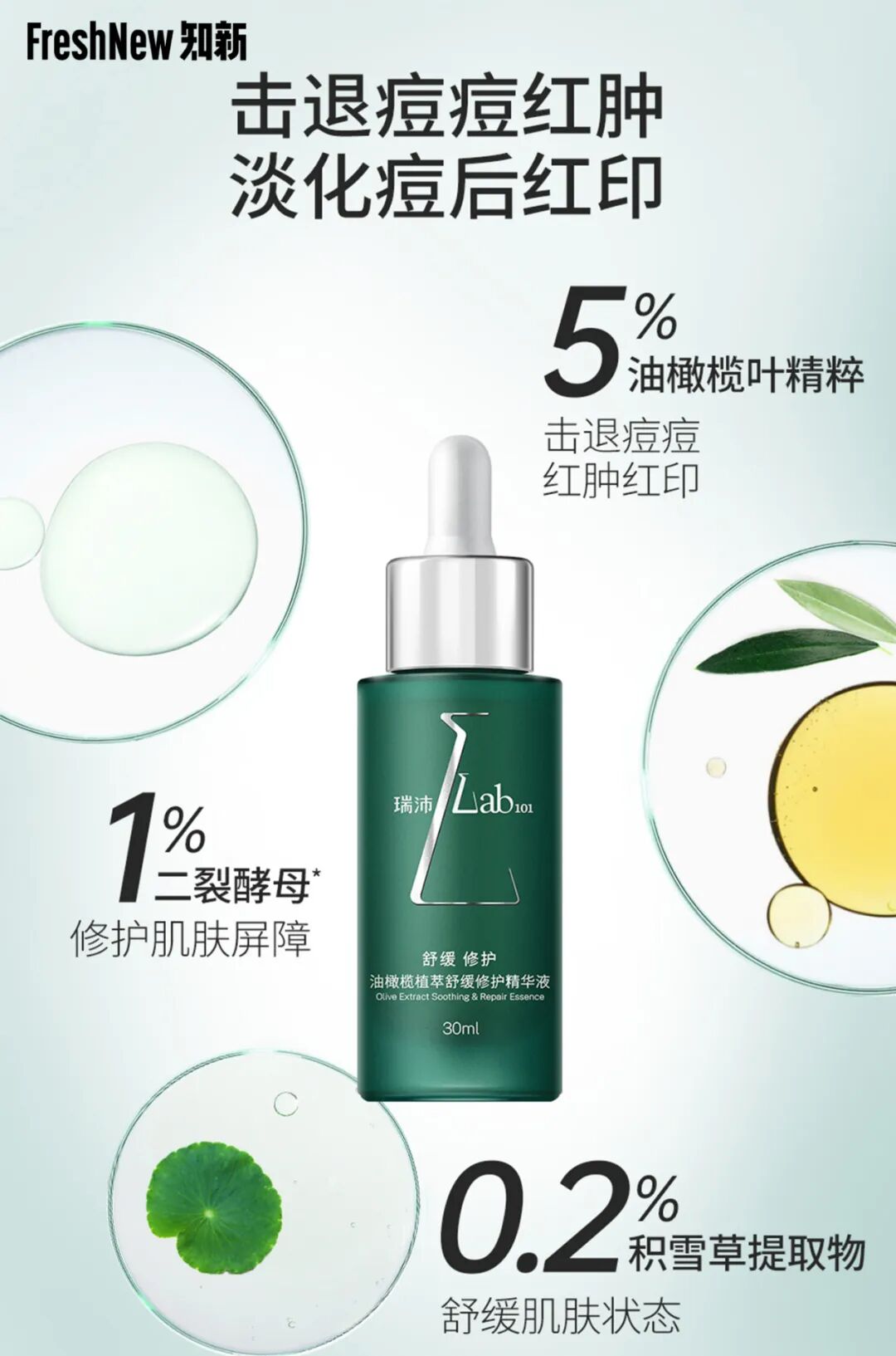 Cici:最想推荐油橄榄植萃舒缓修护精华液,大家可以叫它“小绿灯精华”。这是我们针对肌肤屏障受损问题,尤其是容易出现各种“红”而精心研发的王牌产品,也是「Lab101瑞沛」的新晋爆款产品。