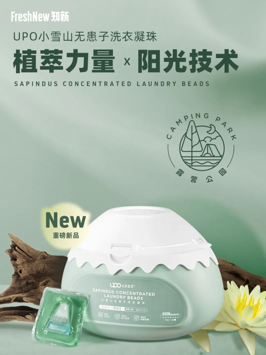 我们的品牌价值主张是“守护雪顶的美好”,这也是小雪山外观设计的来源。因此,我们的产品更多采用可循环材料,生产浓缩型的绿色成分产品,追求更进一步的低碳环保。「UPO元本生活」使用的不是传统石油基的表面活性剂,而是植物基的表面活性剂,PH值中性,更加温和亲肤,毕竟衣服洗完后是要贴身穿的,这很重要。