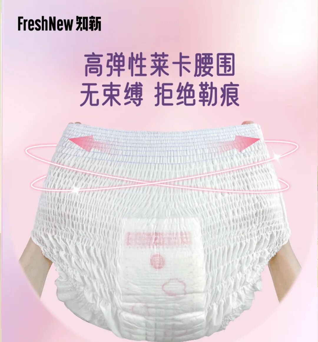 凭借增高40mm的超高腰和莱卡弹力腰围,相比市面上加长30%的整体吸收芯体,吸收量大且360°防漏,软软超高腰能够在经期给女生十足的安全感。同时,这款产品在面层添加了蚕丝蛋白纤维,能够呵护女生的娇嫩肌肤。