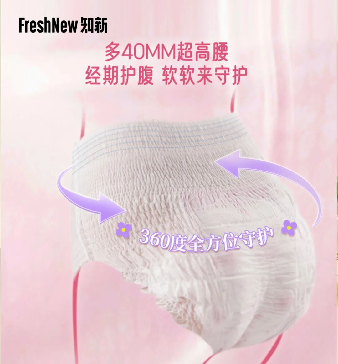 何成茂:软软超高腰,40mm超高腰围,一路防护到肚脐,为你守护经期娇弱易凉腹,经期怕受凉,就穿软软超高腰。