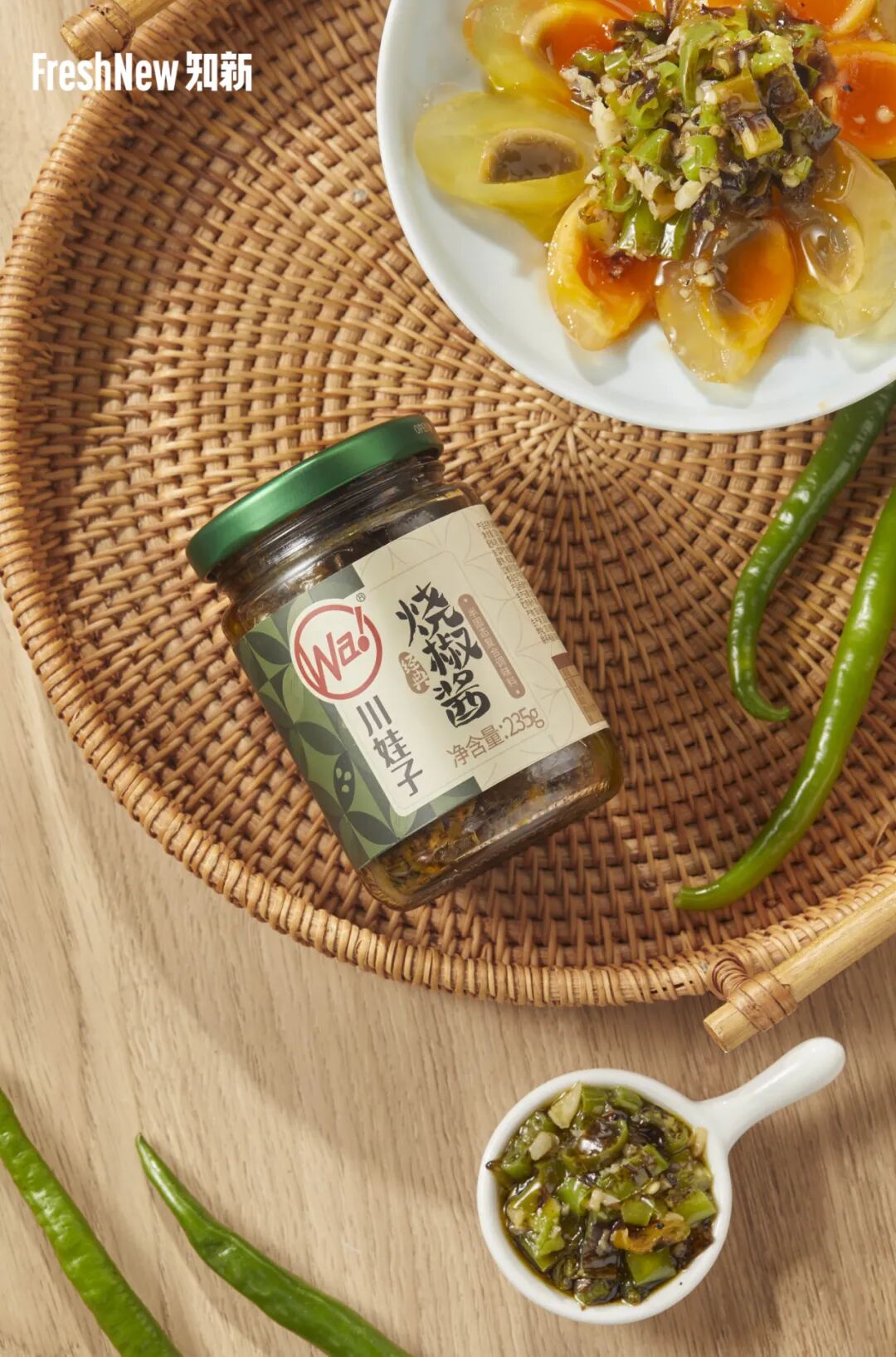 这款“烧椒酱”选用新鲜碧绿二荆条辣椒,以及个头饱满的大蒜,采用地道配方及制作工艺,先将辣椒烧出点点虎皮,再切碎炒制。整体风味中既有炭香,又有椒香,鲜香爽口。从一根二荆条到一瓶烧椒酱,在从田间到餐桌的整个转化过程中,「川娃子」依托「新希望」集团的资源整合优势,缩短运输以及制作时间,致力于将自然馈赠的这份“鲜”,最大程度地呈现给消费者。