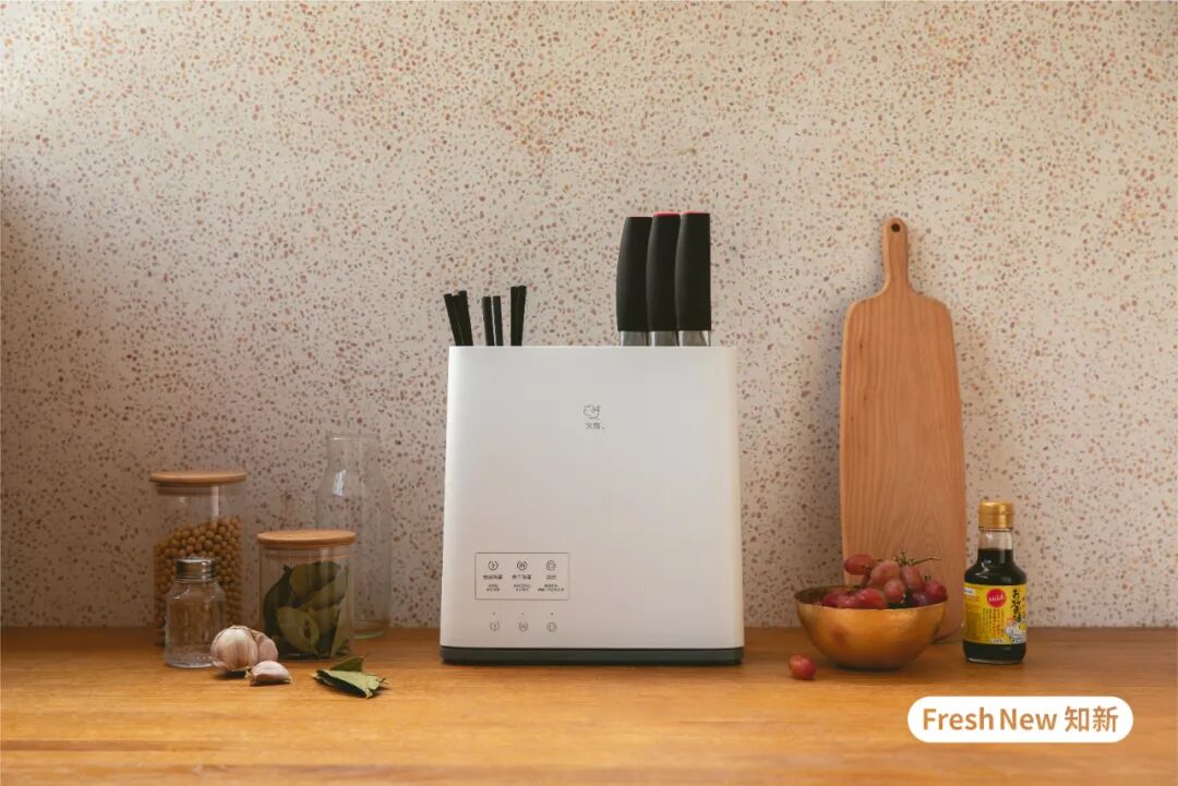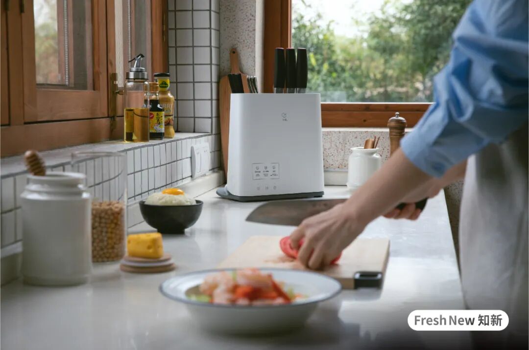 王强:我会推荐火鸡消毒刀架KR61。这款产品可以针对筷子、叉勺、刀具、砧板进行烘干消毒,能99%杀死幽门螺旋杆菌、大肠杆菌、H1N1流感病毒等易在家庭内传播的病菌,它有很高的兼容度,不挑砧板大小和形状,而且整体可拆卸、清洗。我们中国人习惯使用的砧板材质,比如竹板、木制等,在高温消毒的情况下会变形、开裂,但是低温消毒又无法达到消毒效果和烘干程度。所以我们针对各种厚度、材质的砧板反复测试,最终发明了多项专利,能紫外线除菌、360烘干、定时自动除菌,还能针对砧板和刀筷等采用不同温度的除菌模式,可以说「火鸡电器」是消毒刀架行业中对砧板烘干研究很深入的品牌了。