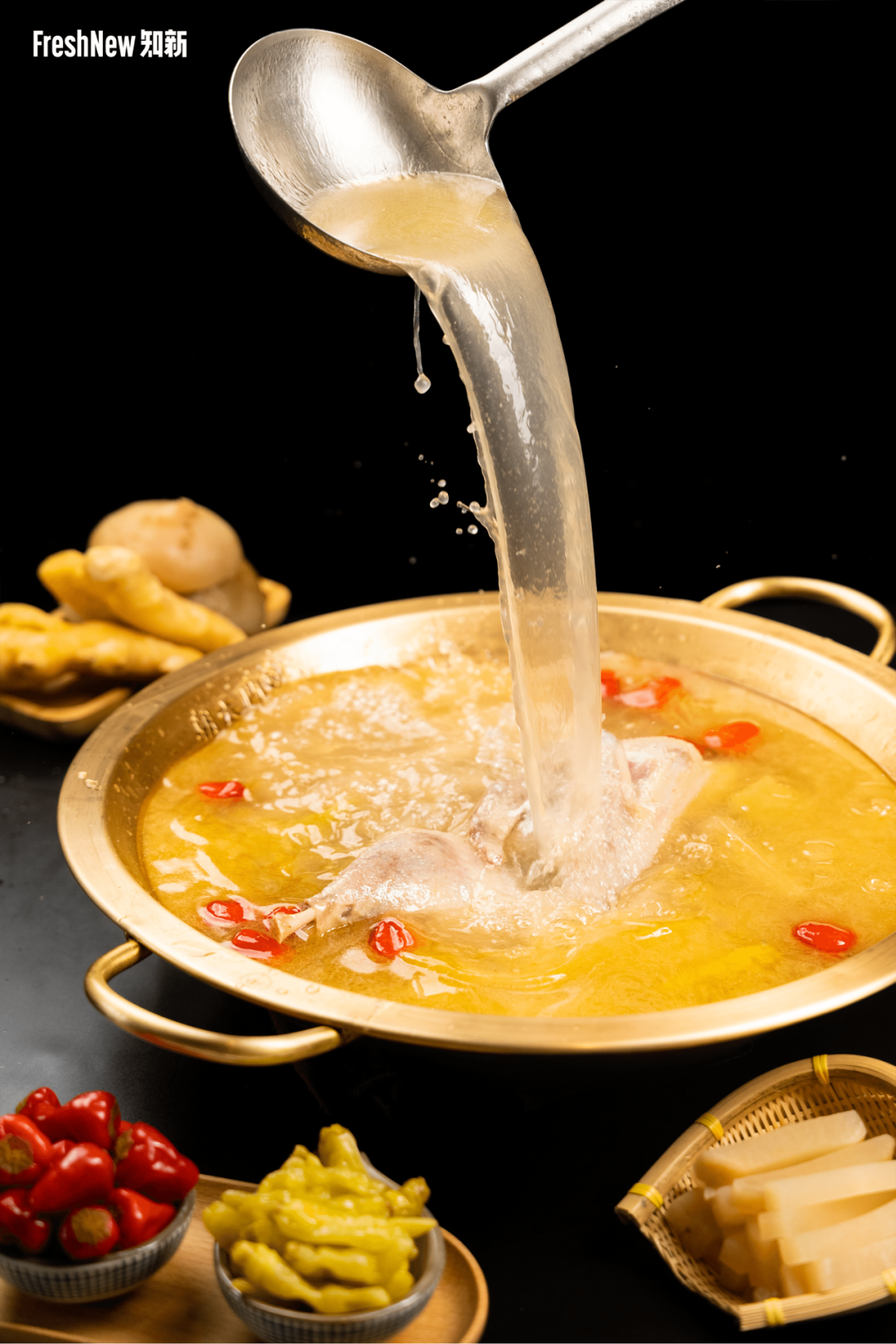川渝人民肯定更爱的是牛油火锅,但我们集团布局是面向全国铺开的,需要考虑到川渝以外的消费者,对于辣味的耐受能力没那么强,另外还有儿童、老人、女性生理期等特殊人群和需求。所以,我们想用“有料”打破地域限制,通过全新推出的“高山菌菇肚子鸡”锅底,为不太能吃辣的食客提供更多选择。