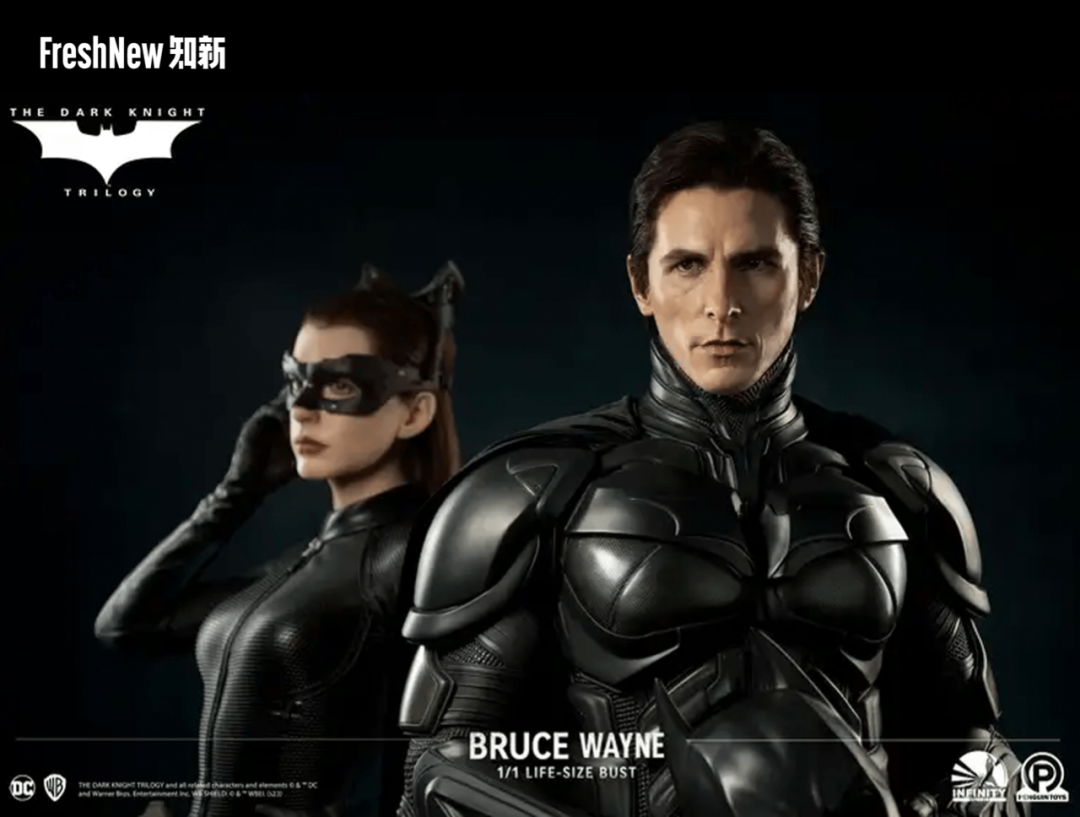 整体上看,蝙蝠侠身着战袍,手执头盔自然放置于腰间,背上披着黑色斗篷,脸部则完全露出,脖颈微微左转,目视远方,眼神深邃而坚定,仿佛随时准备迎击罪恶,深度还原了蝙蝠侠的精气神,形神兼备,展现出了贝尔蝙蝠侠的贵族气质与正义之志。