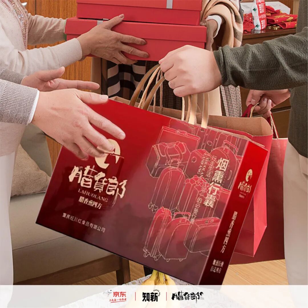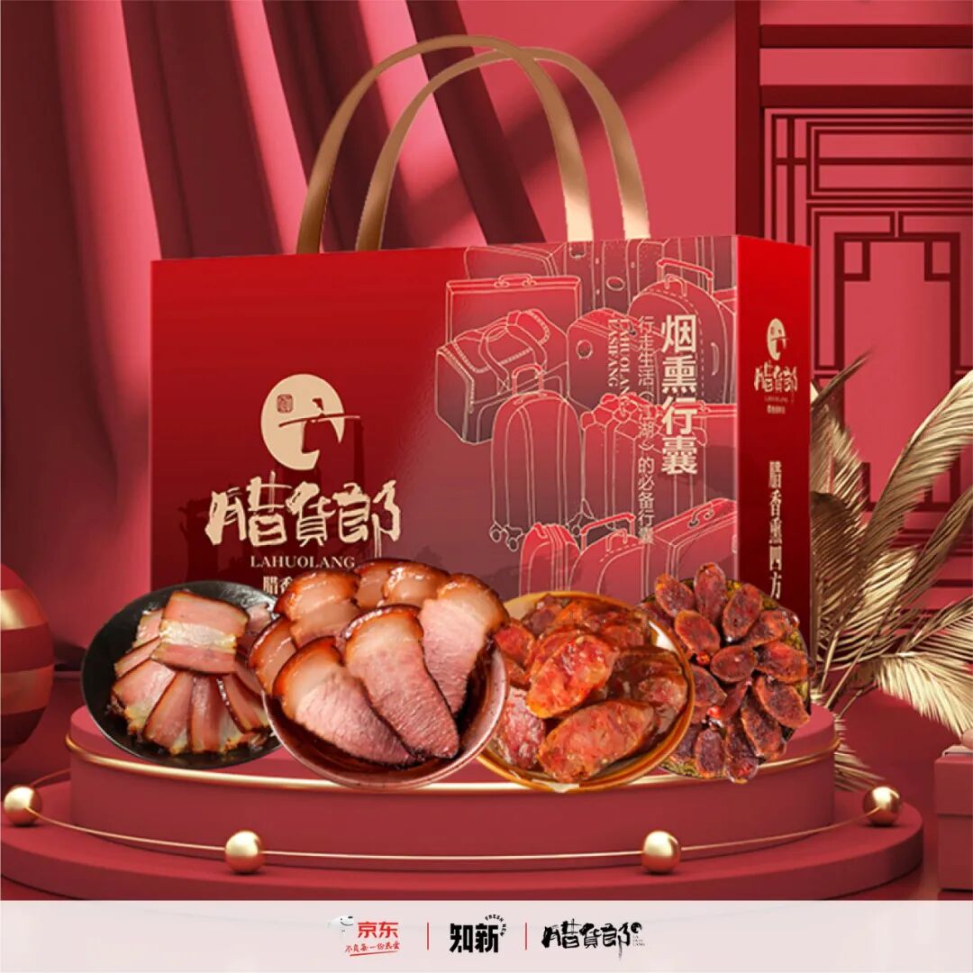 郭康:每年春节返程,被父母塞满腊货的行李箱,是灯红酒绿的大都市里,漂泊奋斗的年轻人心里最真实的乡愁,难觅的「乡味」则是乡愁的寄托。于是,「腊货郎」根植故土原乡,重新审视人们和原生土地之间的温情联结,力图塑造「烟熏行囊,行走四方」的品牌新概念。