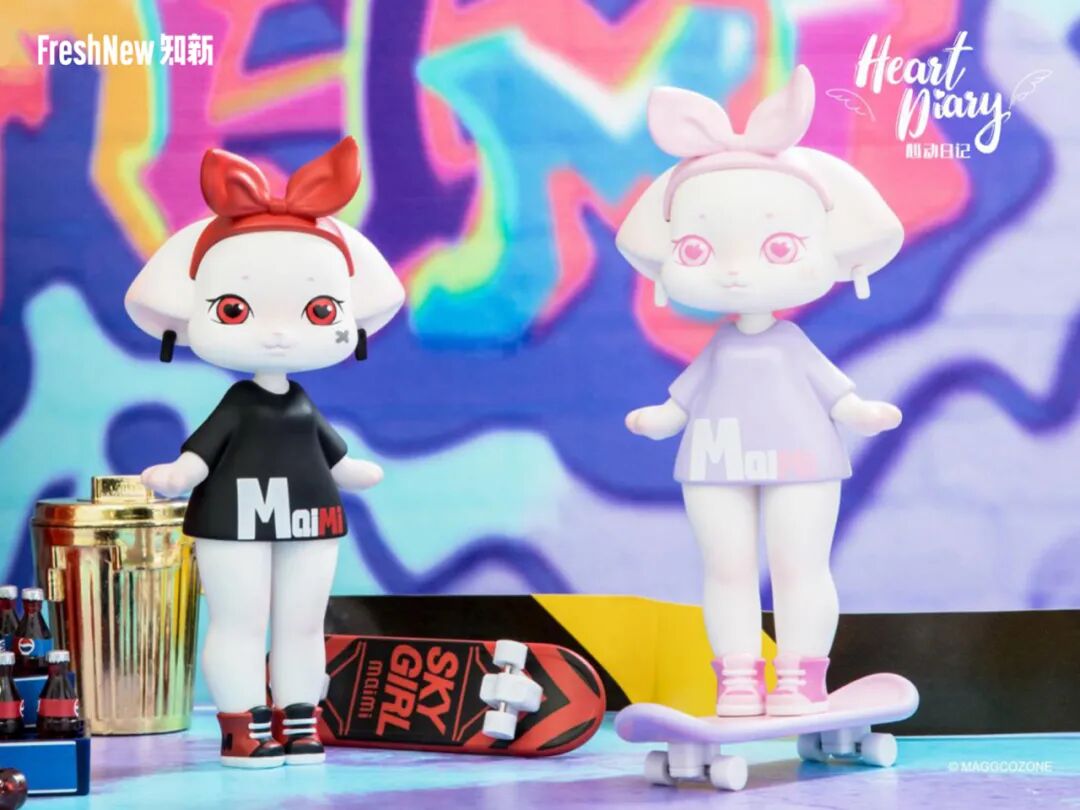 王磊:我最想推荐的是「麦咪公仔·心动日记盲盒」,这套盲盒的主角是一名可爱的喵少女,从各款穿搭细节就能感受到她拥有多面性格,这样设计的初衷是期望女生们能从麦咪身上找到自己生活中的影子。尤其是本系列中滑板主题的两个人气款,不仅与奥运的运动氛围非常契合,还受到了大、小女生的追捧,我们设置在线下的抽盒机大摆件还吸引到女排姑娘驻足留影。