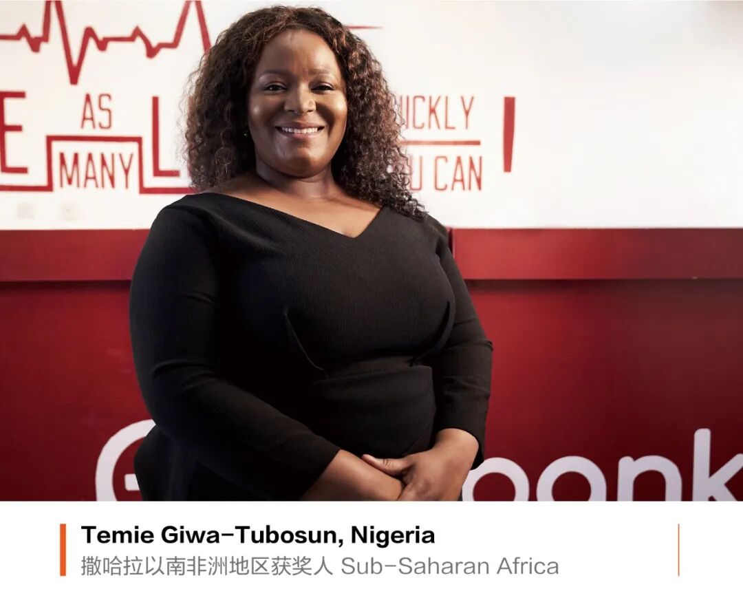 来自撒哈拉以南非洲地区的Temie Giwa-Tubosun,是Lifebank创始人兼CEO,致力于解决非洲地区医疗资源匮乏的问题,帮助医院寻找所需的关键医疗物资。自2016年来,Lifebank已挽救了8000人的生命。