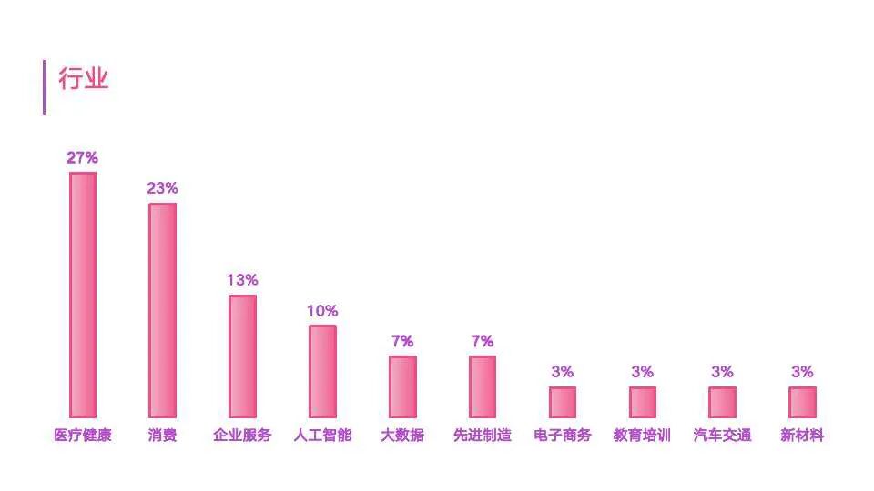 3.创业赛道集中在医疗健康和消费,分别有8位和7位,占比为27%、23%;