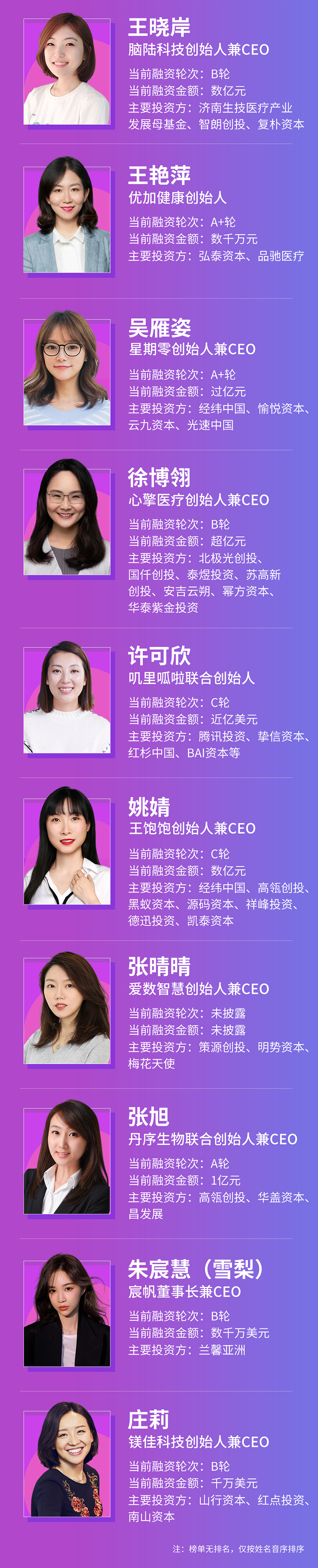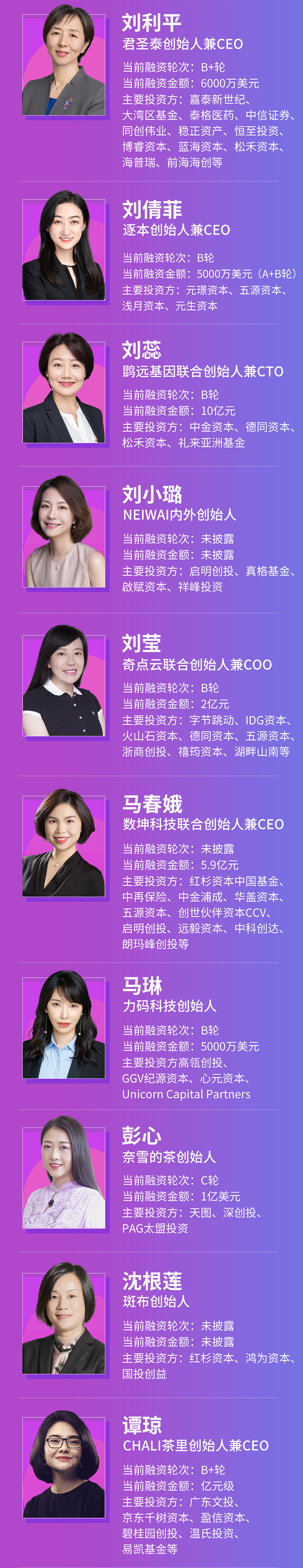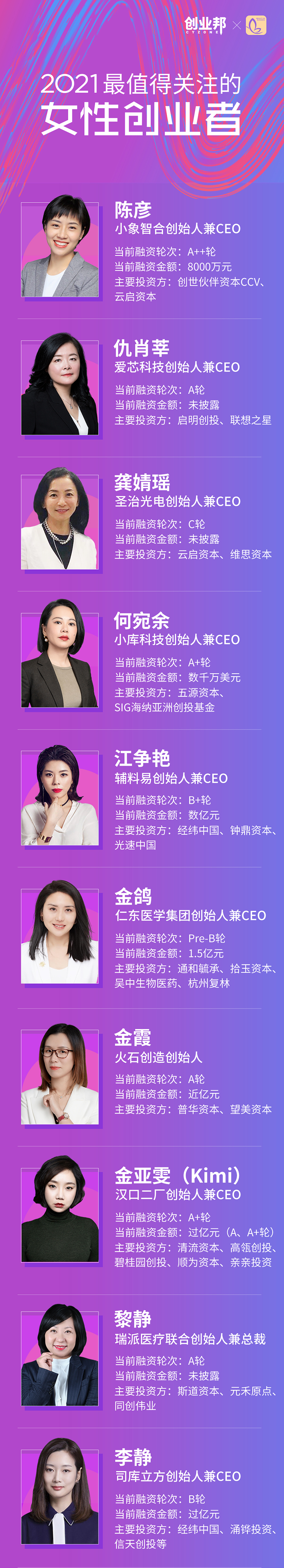 同时,经过调研分析,我们得到了30位2021最值得关注的女性创业者画像: