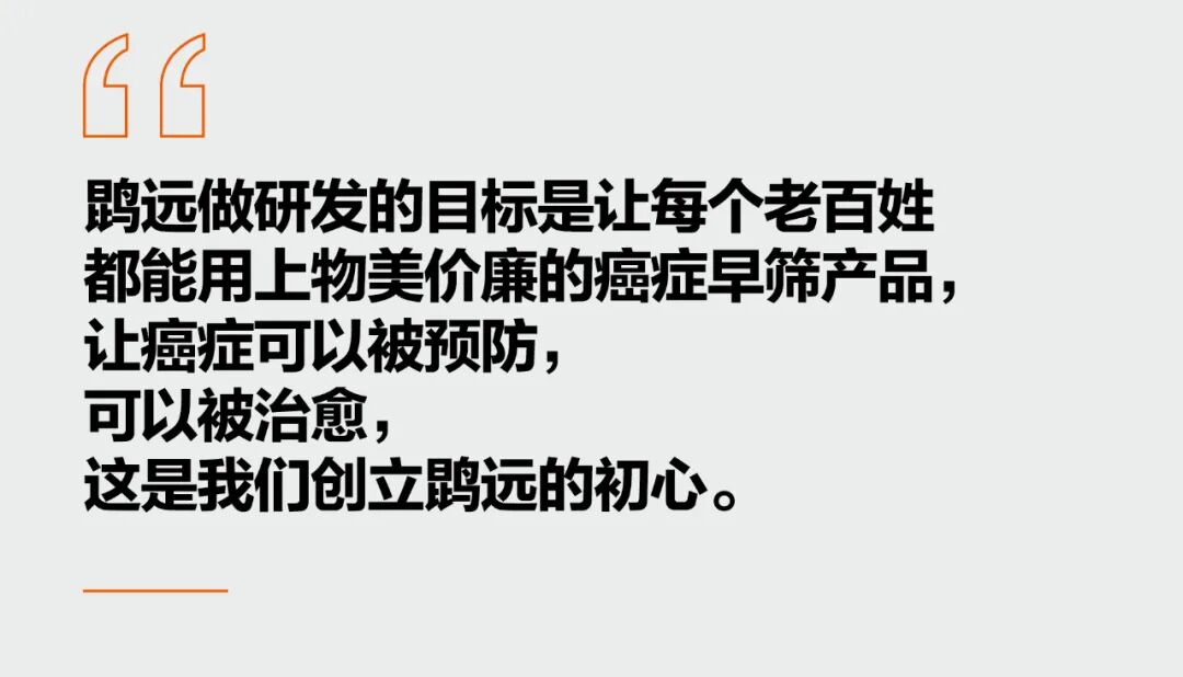 “要做基层老百姓的癌症筛查,要求采集、运输、处理、实验等技术都要简单方便,县医院、卫生院都能操作,同时物美价廉,价格要到百元级,但效果不差,这对我们的技术要求更高。”张江立说道,“但鹍远做研发的目标是让每个老百姓都能用上物美价廉的癌症早筛产品,让癌症可以被预防,可以被治愈,这是我们创立鹍远的初心。”