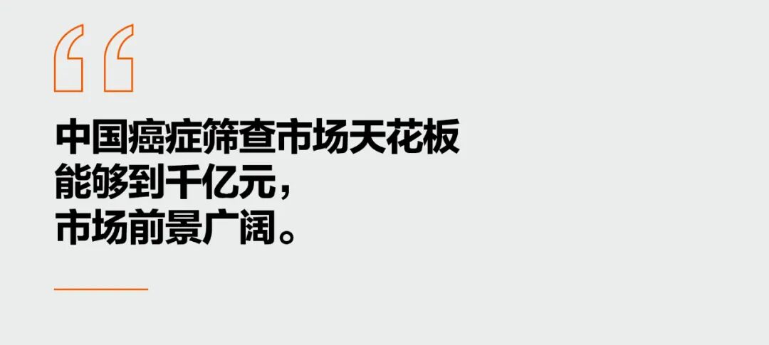 据此预估,张江立认为,中国癌症伴随诊断的市场天花板在100亿元到200亿元,而中国癌症筛查的市场天花板能够到千亿元,布局癌症早筛的中国企业面临更大的市场机会。