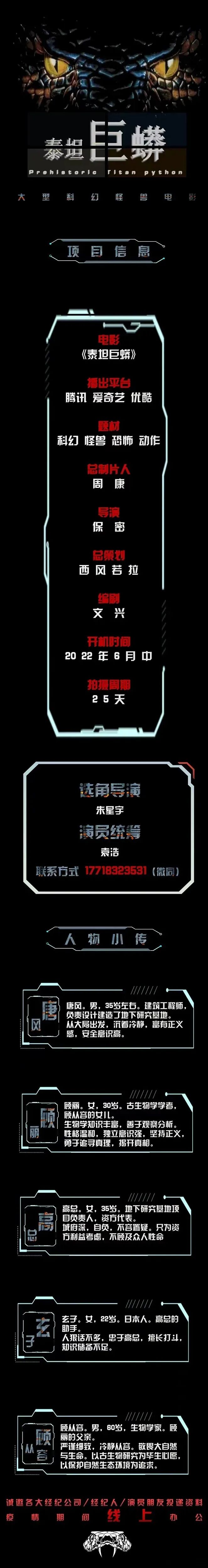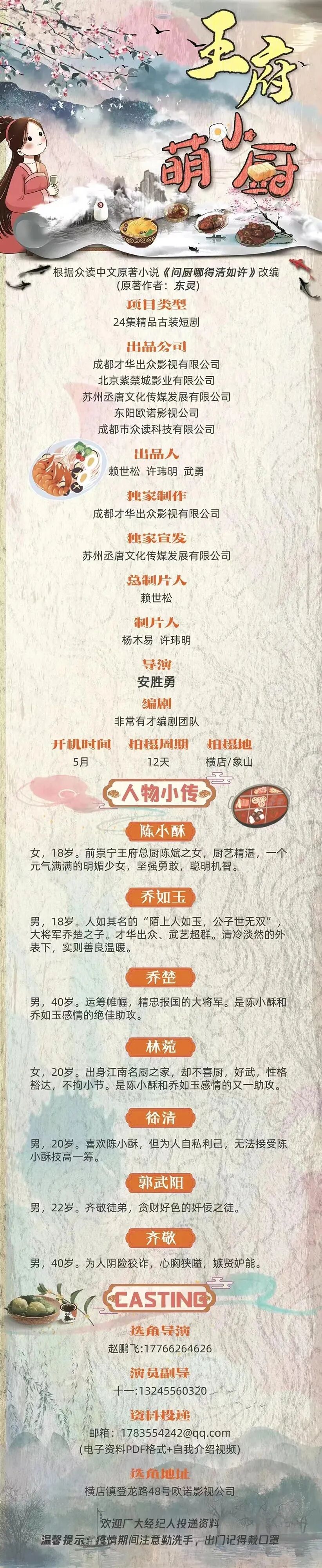 CASTING联系人:肖十牙 15643274234(微信同步)