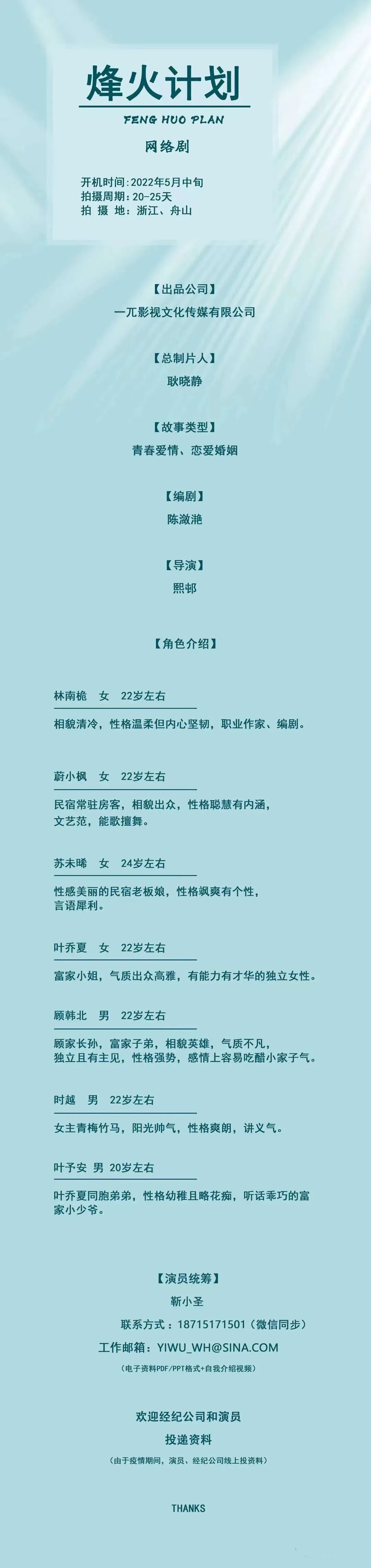 诚邀各大经纪公司、经纪人、演员朋友投递资料,疫情期间线上办公