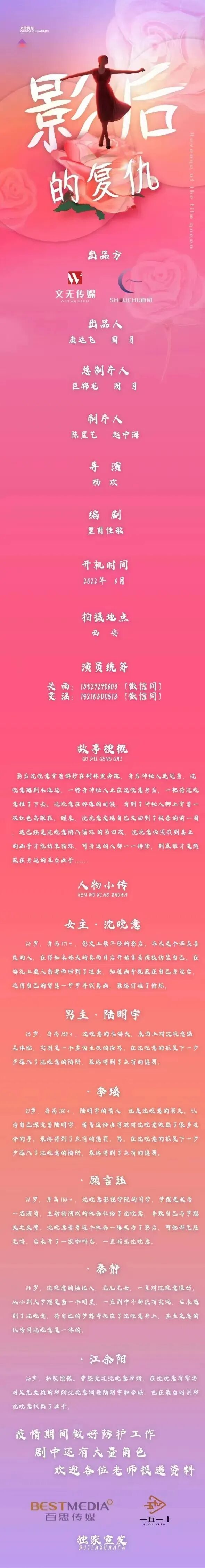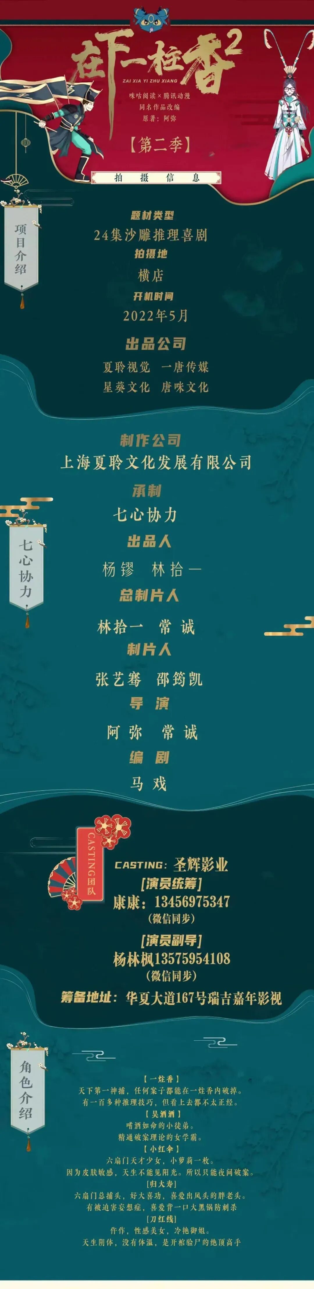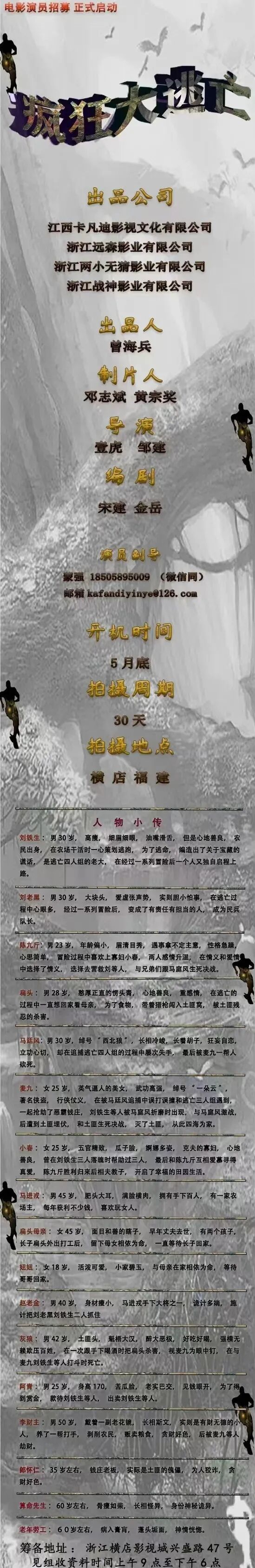 剧中大量角色未定,欢迎各位经纪人及演员老师投递资料。
