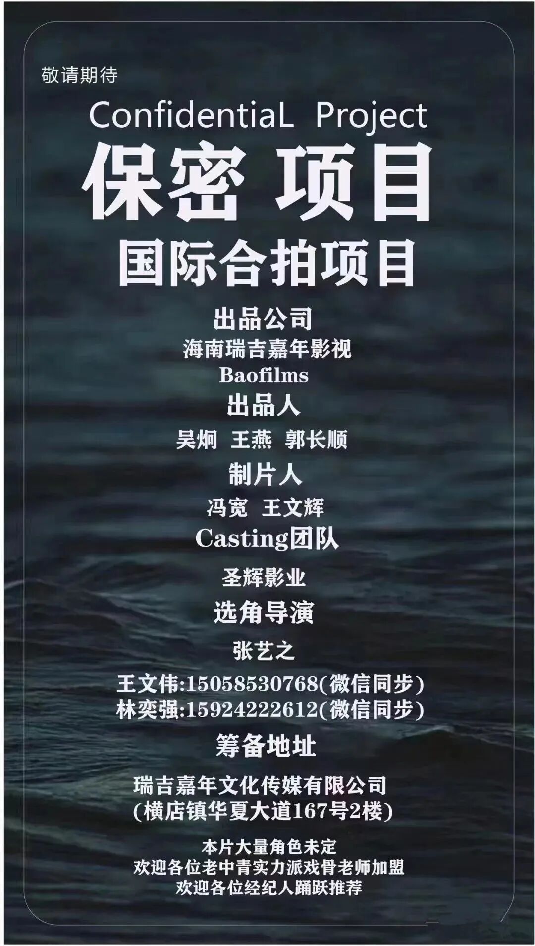 本片大量角色未定,欢迎各位老中青实力派戏骨老师加盟,欢迎各位经纪人踊跃推荐。