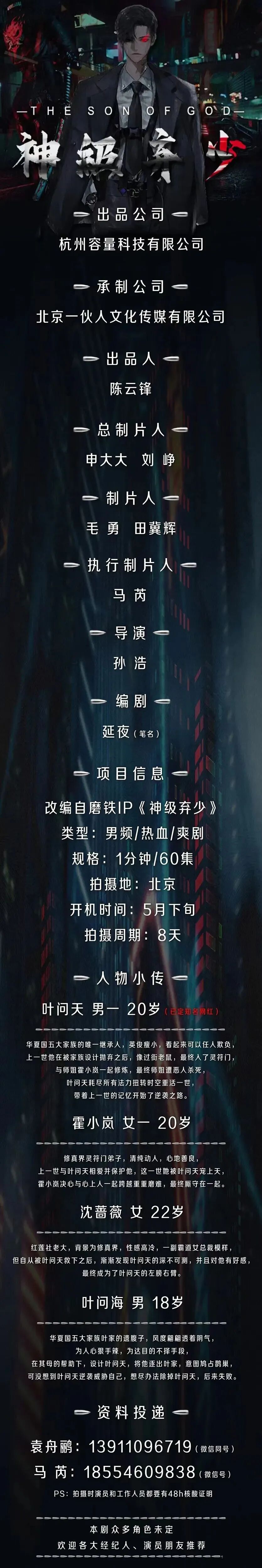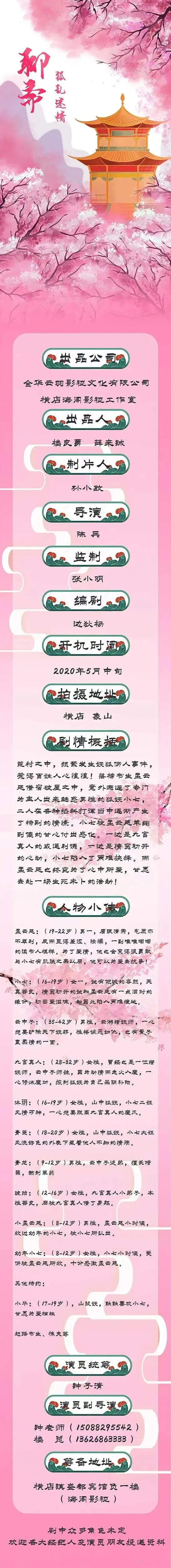 剧中众多角色未定,欢迎各大经纪人及演员朋友投递资料