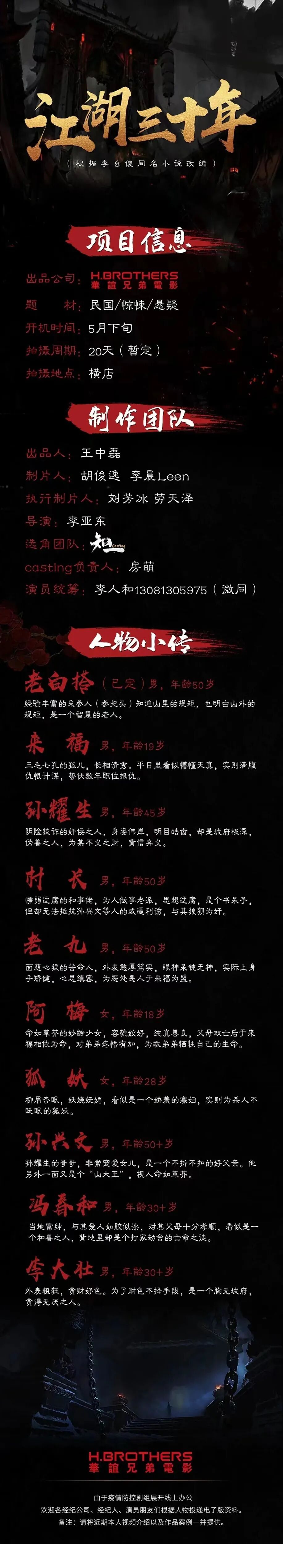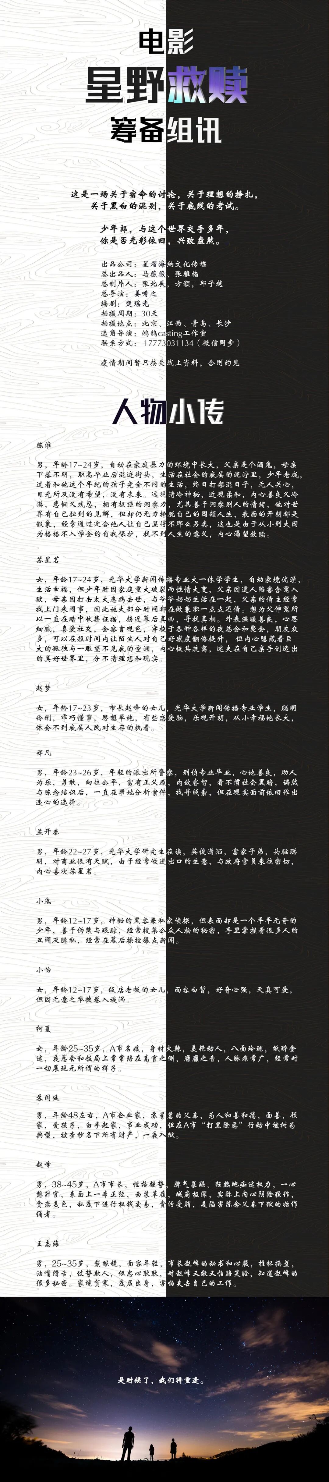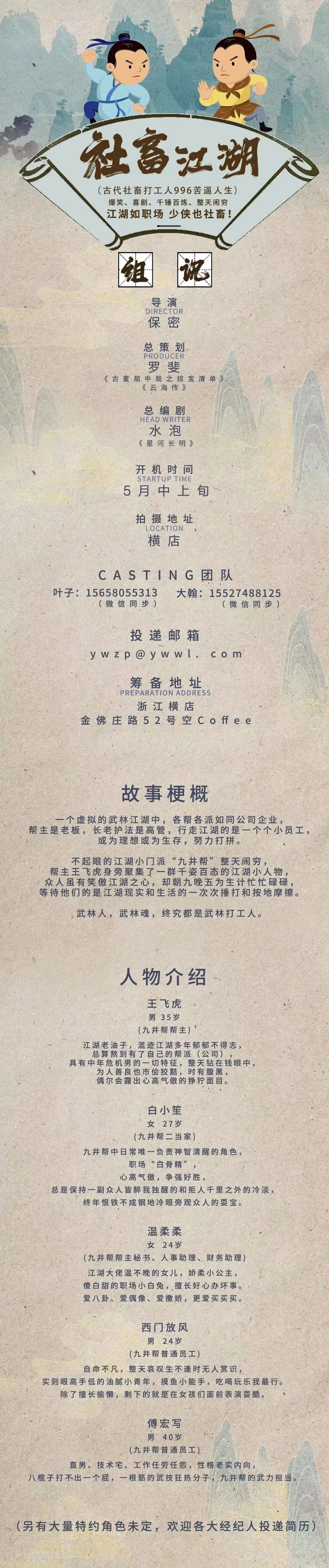 本栏目发布组讯由小编采集与业界共享,组讯如有变化请以实际情况为准。如果遇到剧组收费情况,请谨慎对待并私信官微@戏客Seeker,我们会公示问题组讯并及时处理。谢谢。