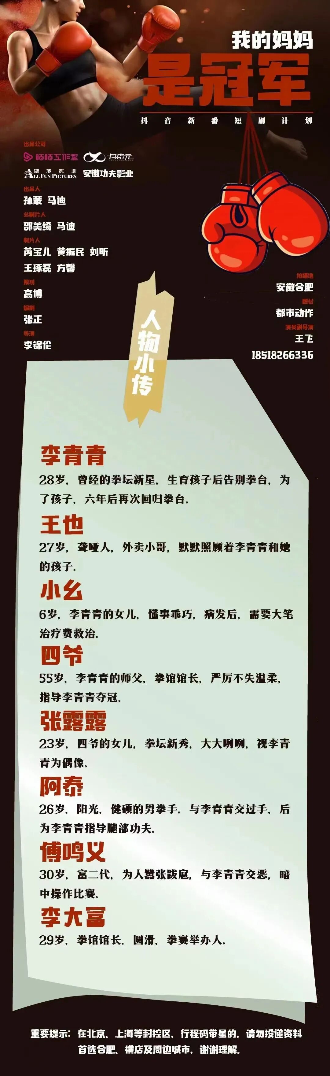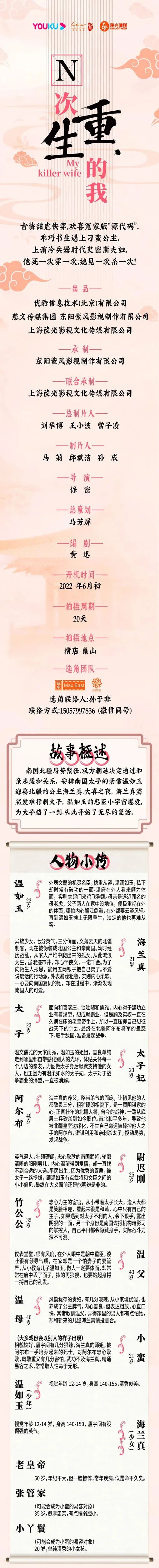 选角联络人:孙子非 15057997836(微信同步)
