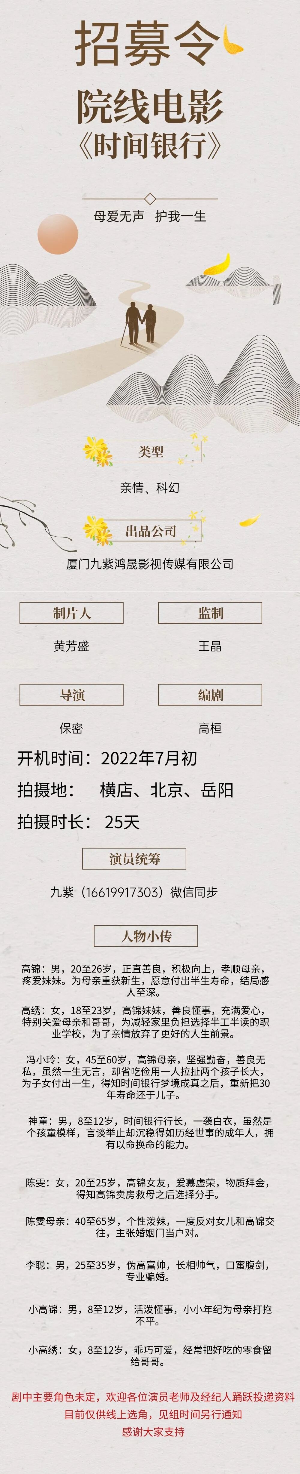 本栏目发布组讯由小编采集与业界共享,组讯如有变化请以实际情况为准。如果遇到剧组收费情况,请谨慎对待并私信官微@戏客Seeker,我们会公示问题组讯并及时处理。谢谢。