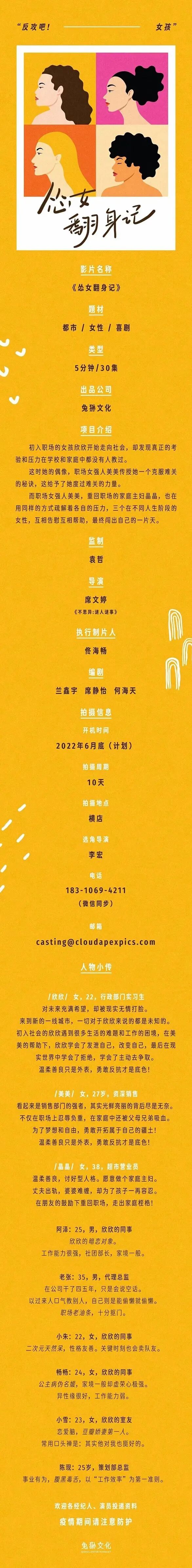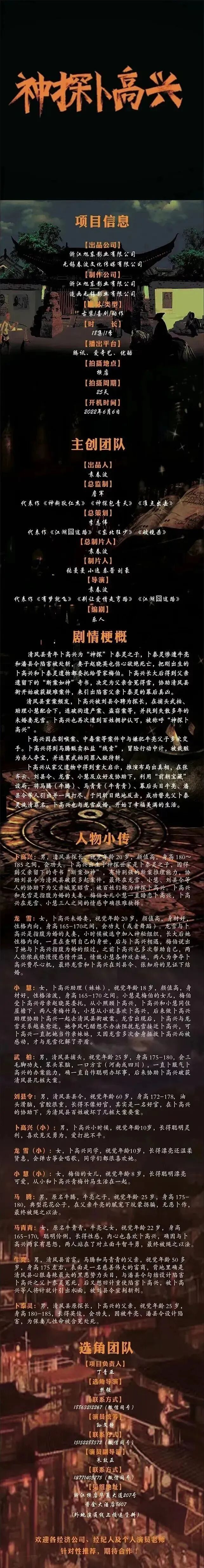 本栏目发布组讯由小编采集与业界共享,组讯如有变化请以实际情况为准。如果遇到剧组收费情况,请谨慎对待并私信官微@戏客Seeker,我们会公示问题组讯并及时处理。谢谢。
