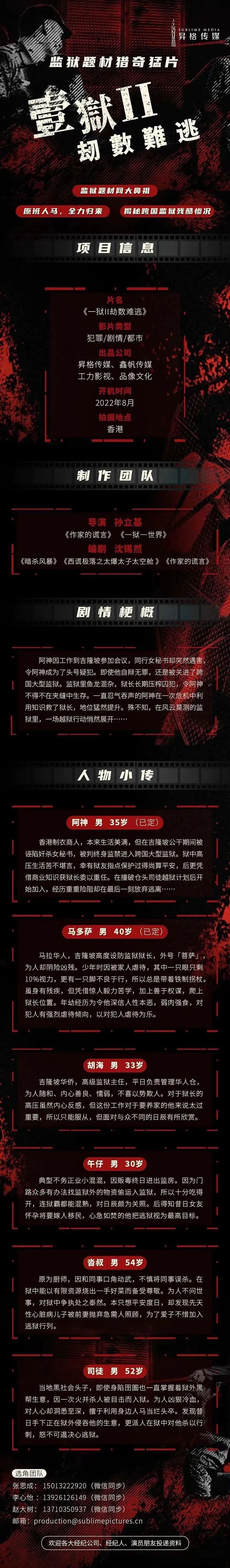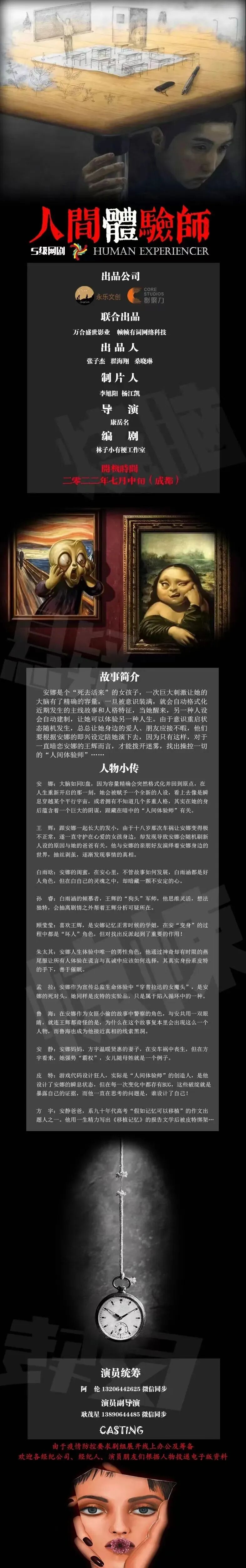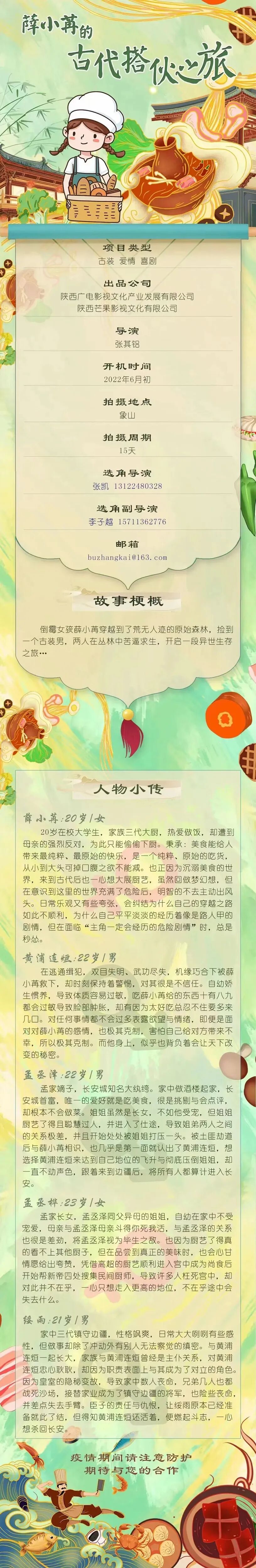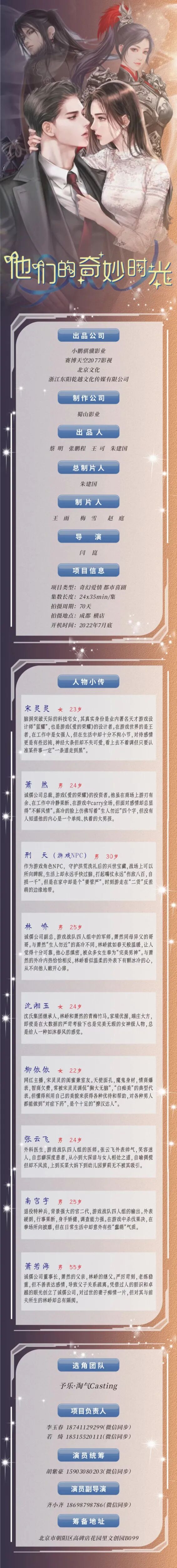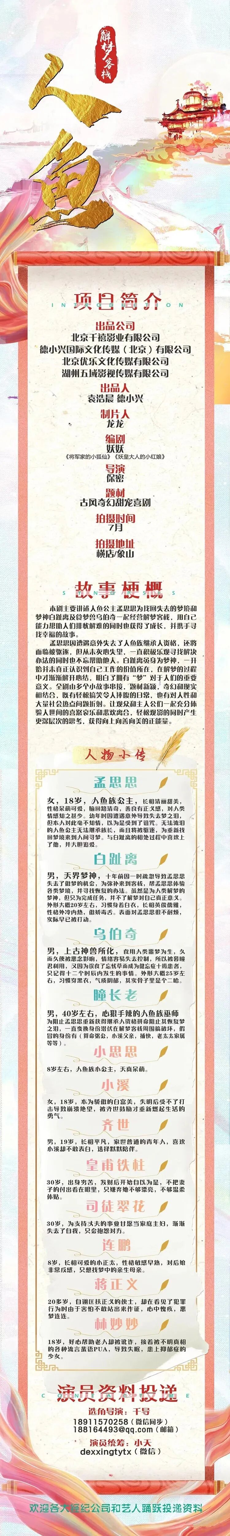 选角团队联系人:张思成 15013222920 (微信同步)