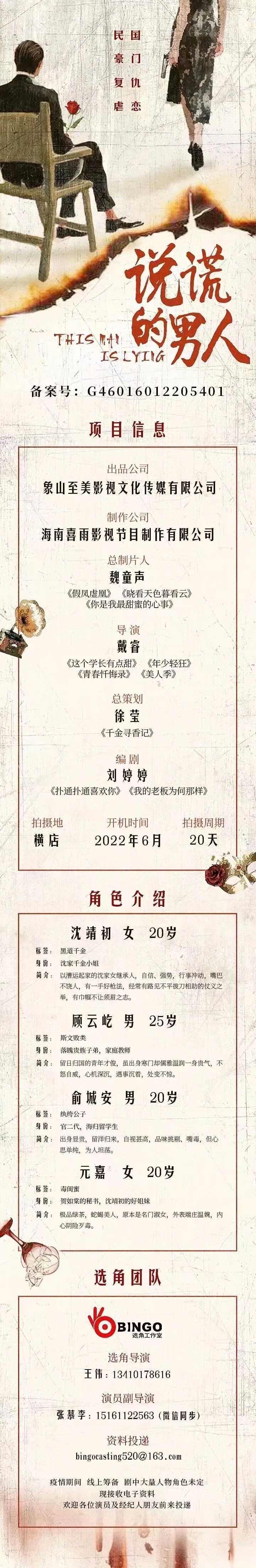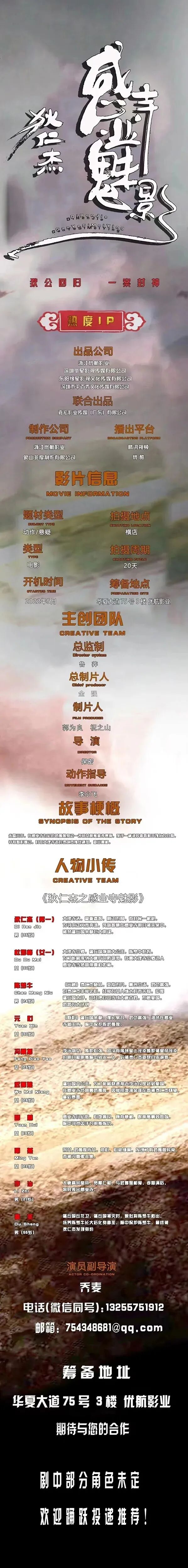 疫情期间线上筹备,剧中大量人物角色未定,现接收电子资料,欢迎各位演员及经纪人朋友前来投递。