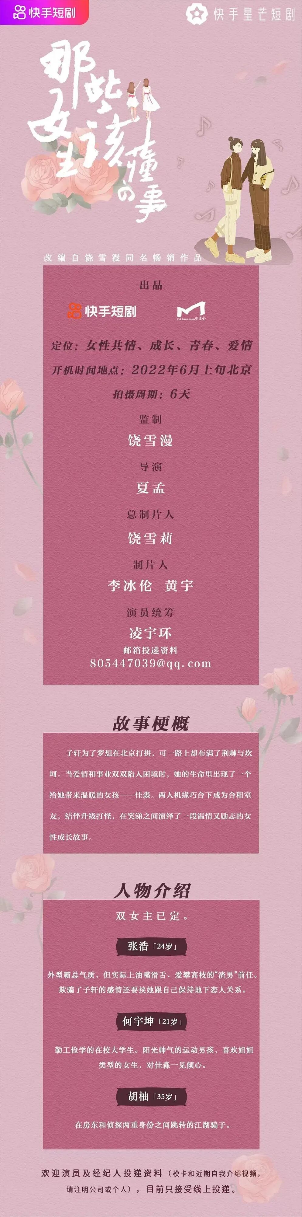 剧中部分角色未定,欢迎踊跃投递推荐,期待与您合作!