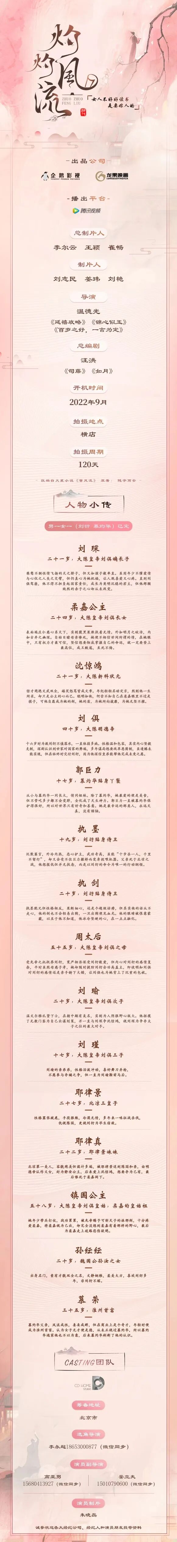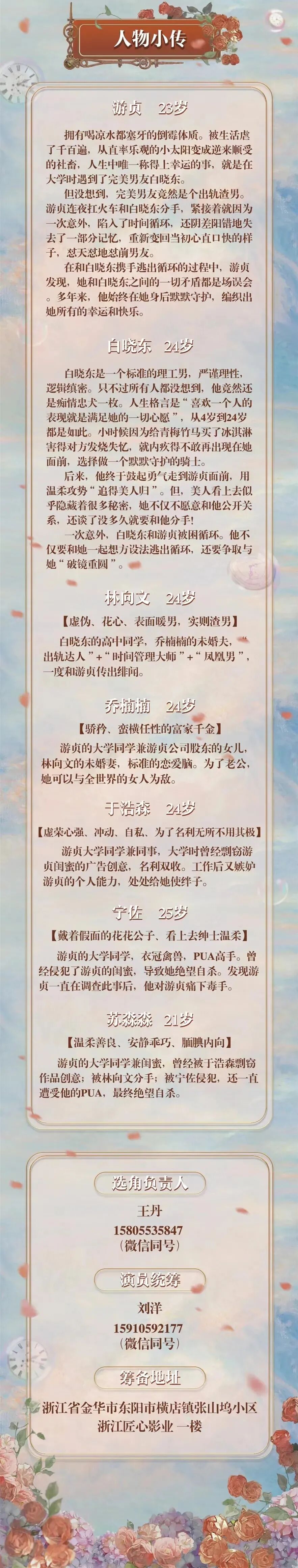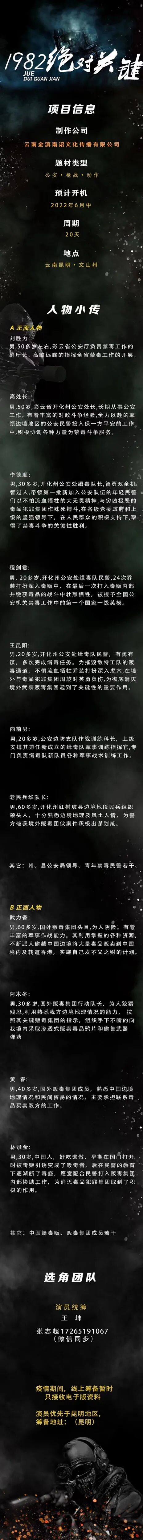剧中大量角色未定,年龄分布广泛,欢迎各大经纪公司、经纪人、艺人朋友多多推荐!