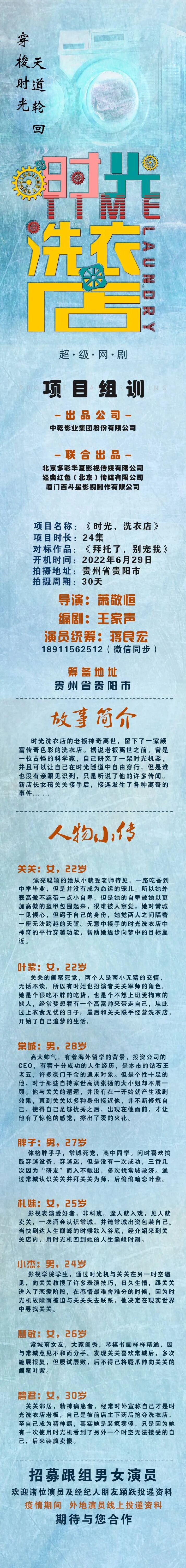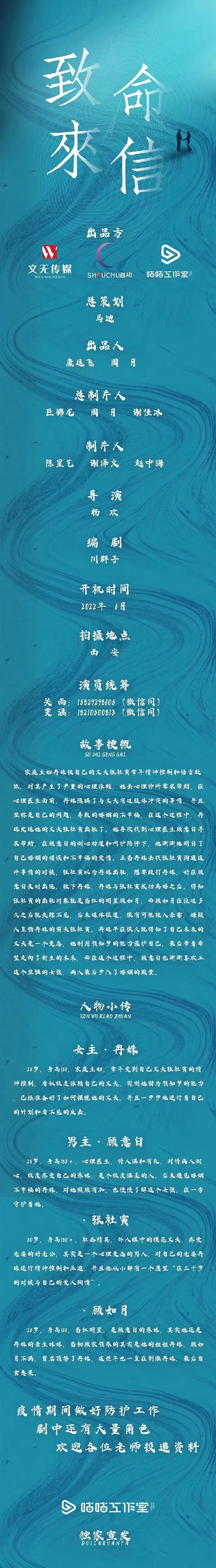 本组演员全部未定,欢迎各大经纪公司各位演员朋友投递资料,防控需要,目前只接受线上投递。