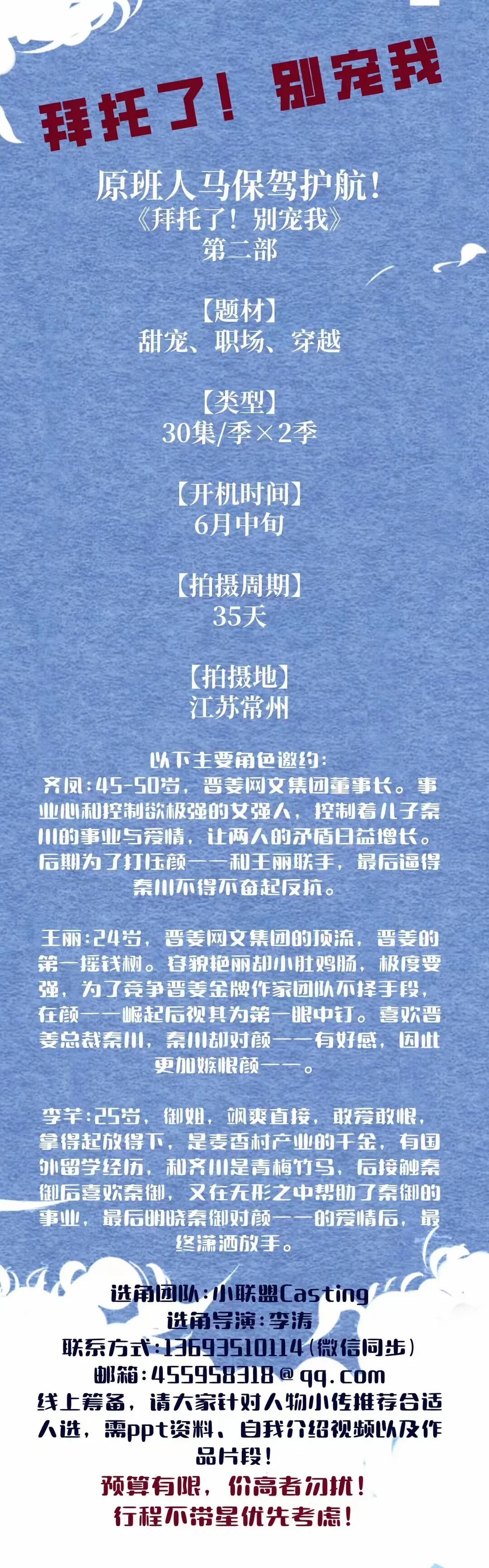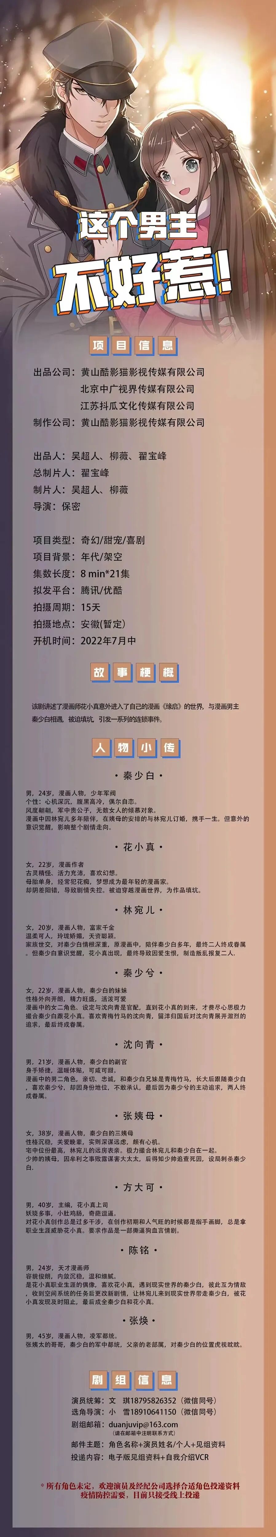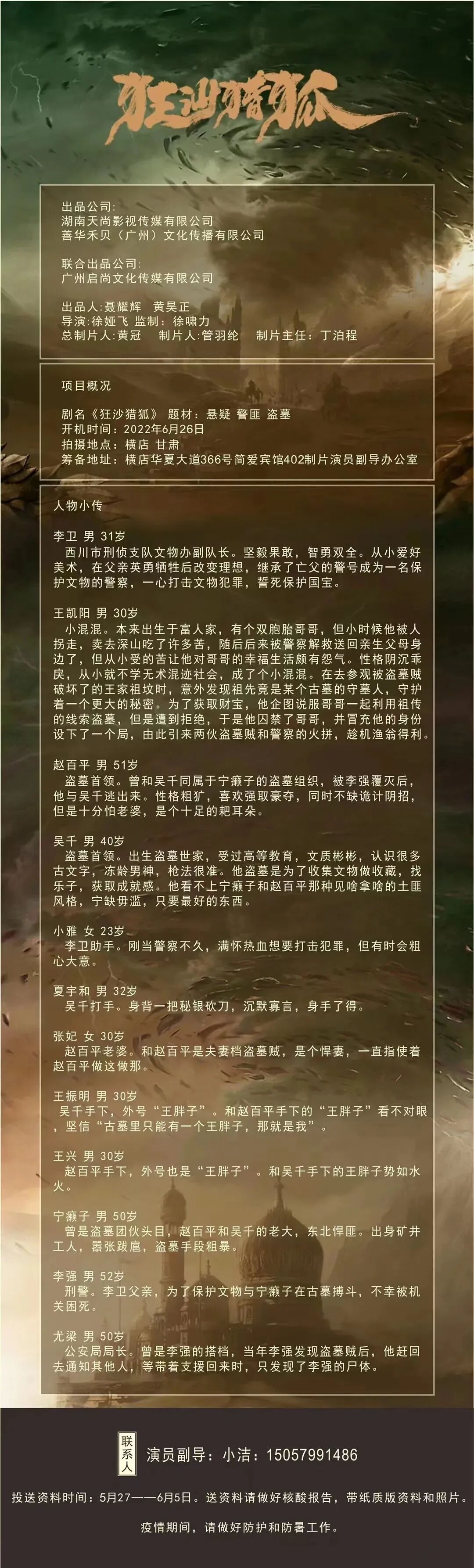 片中大量角色未定,欢迎各大经纪公司及演员朋友投递资料,期待与您合作