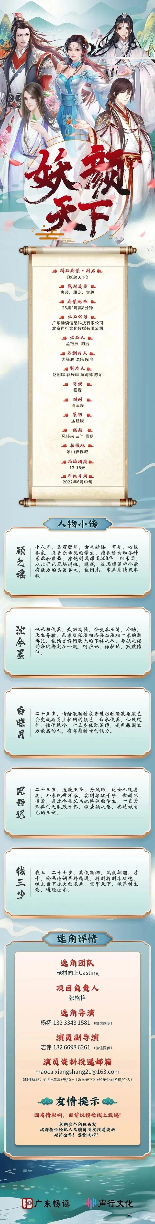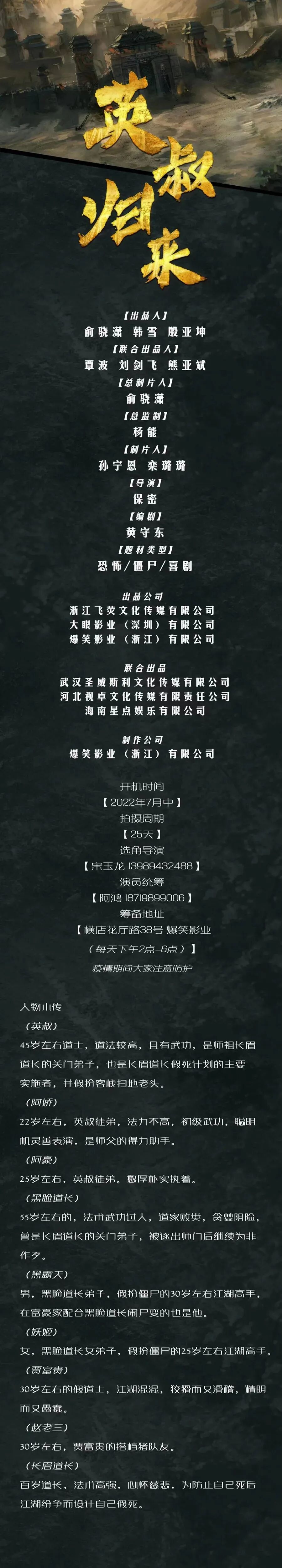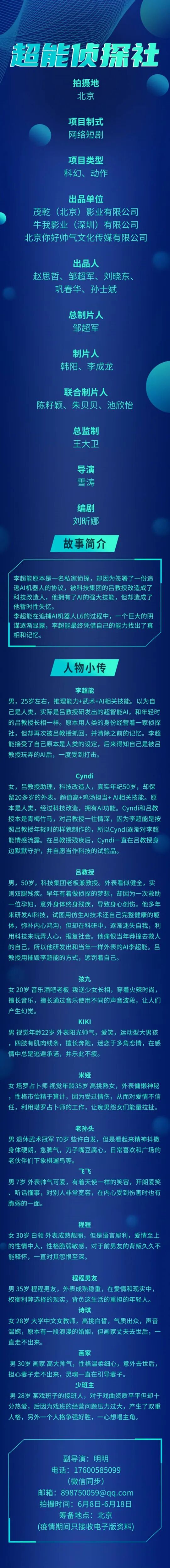 片中大量角色未定,欢迎各大经纪公司及演员朋友投递资料,期待与您合作