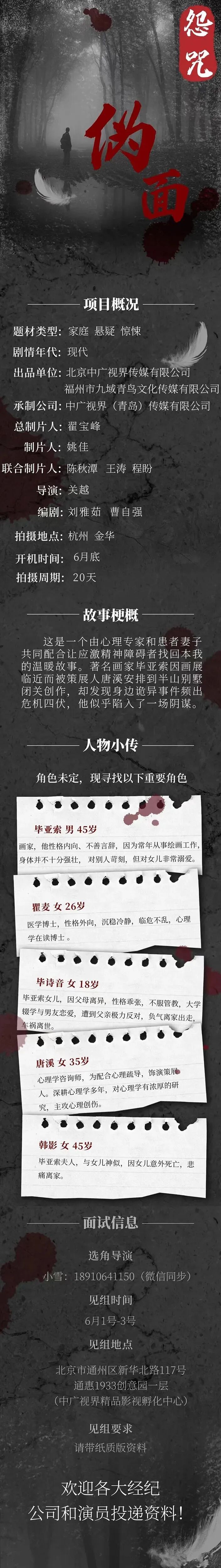 本栏目发布组讯由小编采集与业界共享,组讯如有变化请以实际情况为准。如果遇到剧组收费情况,请谨慎对待并私信官微@戏客Seeker,我们会公示问题组讯并及时处理。谢谢。