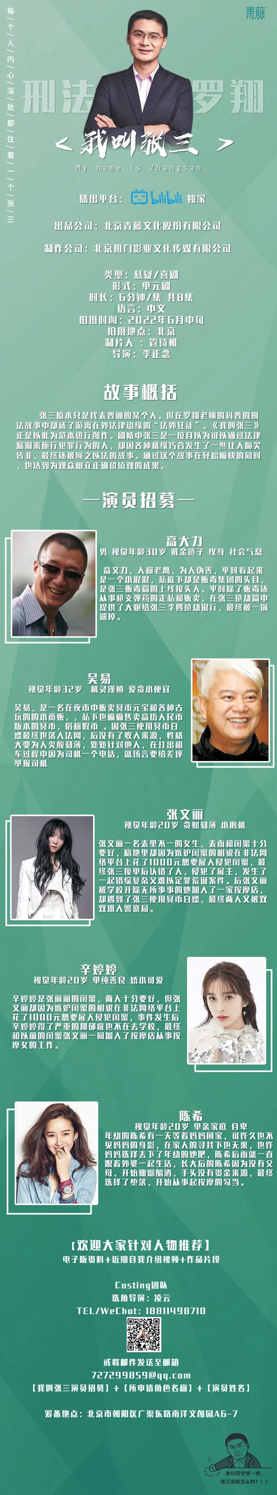 演员统筹:胡霆 15801013980(同微信)