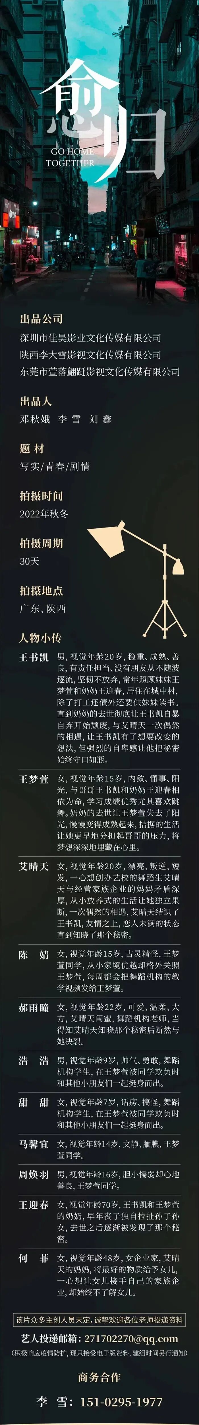 出品公司:深圳市佳昊影业文化传媒有限公司、陕西李大雪影视文化传媒有限公司、东莞市萱落翩跹影视文化传媒有限公司