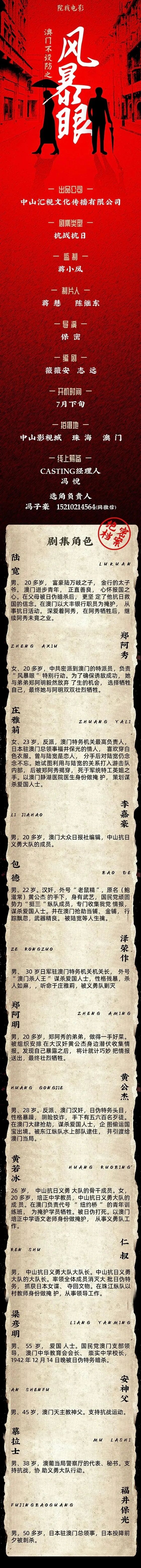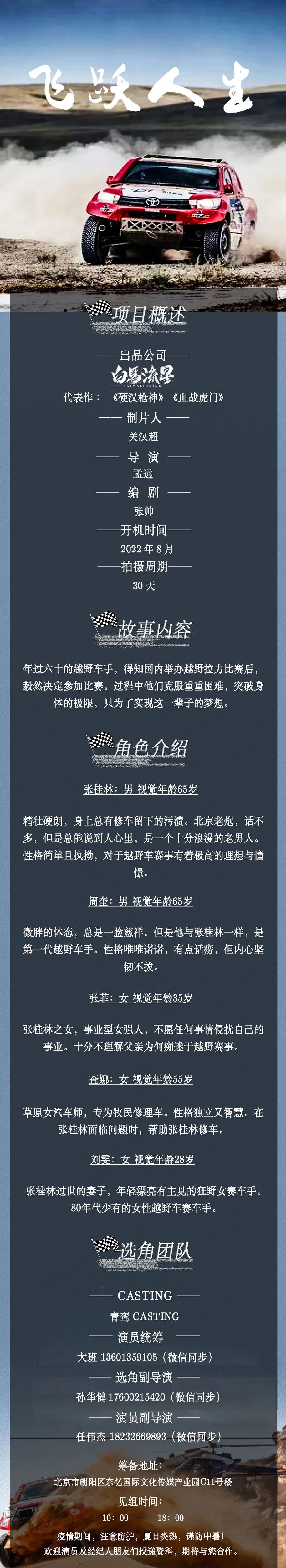 Casting联系人:郑国瑞 13931363893(微信同步)