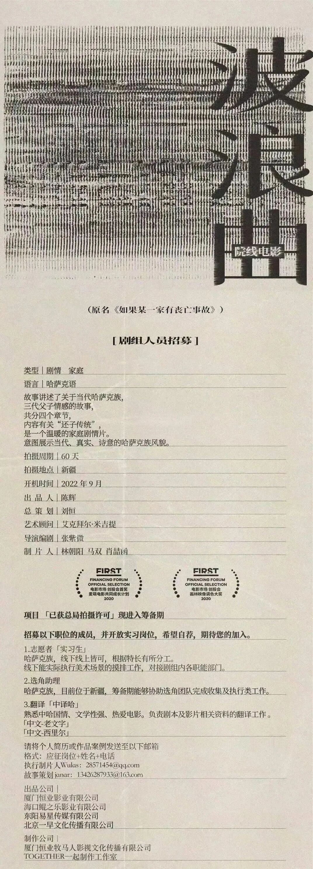 本栏目发布组讯由小编采集与业界共享,组讯如有变化请以实际情况为准。如果遇到剧组收费情况,请谨慎对待并私信官微@戏客Seeker,我们会公示问题组讯并及时处理。谢谢。