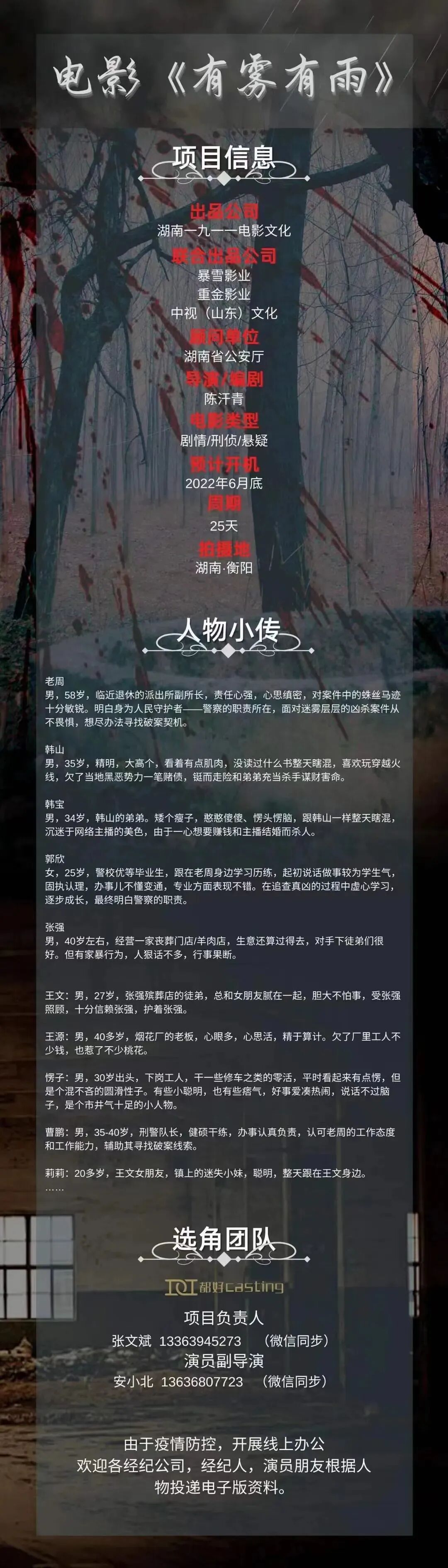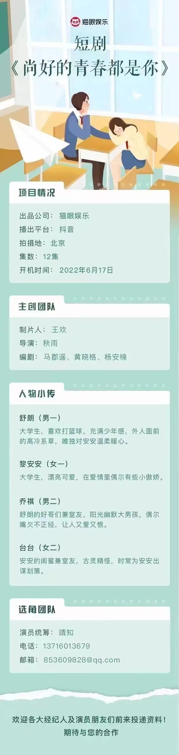 选角导演:毛毛 17610819685 (微信同步)