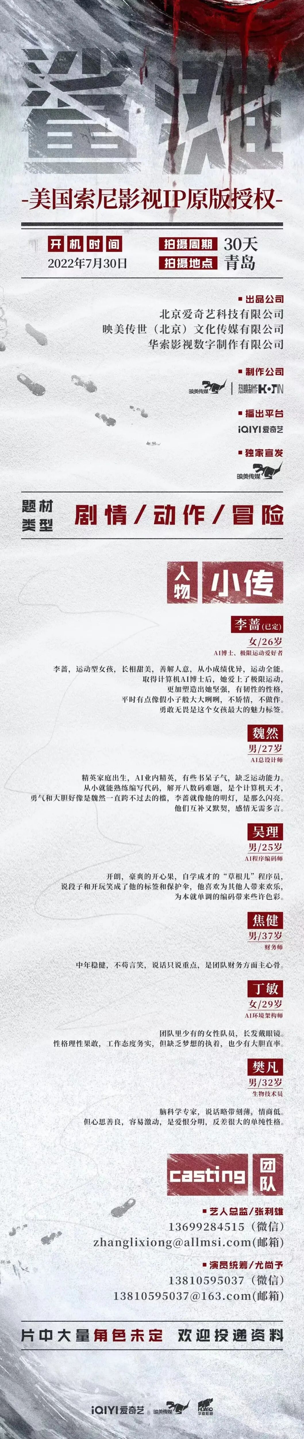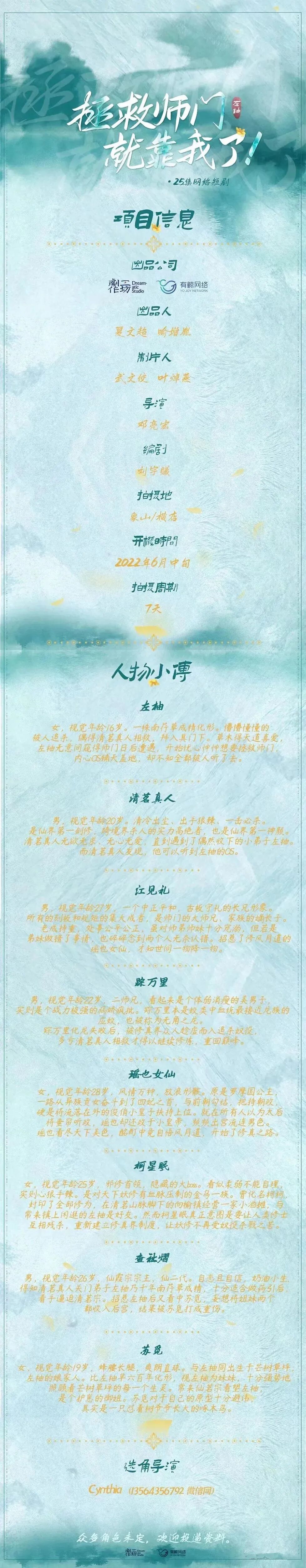 选角导演:cythia 13564356792 (微信同步)