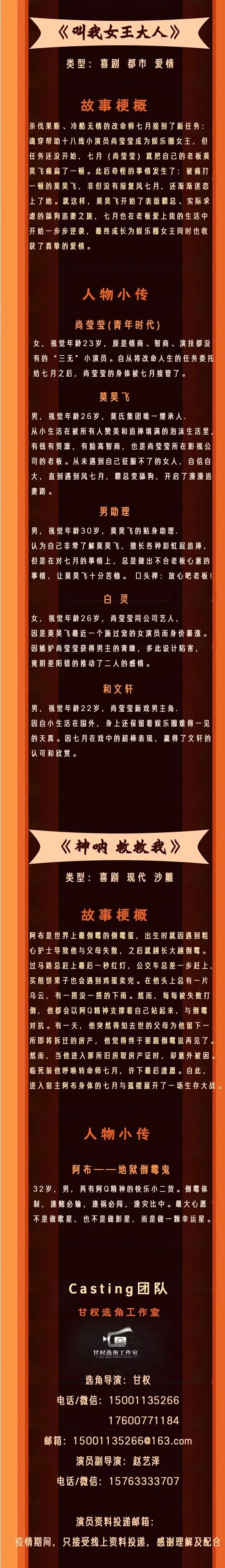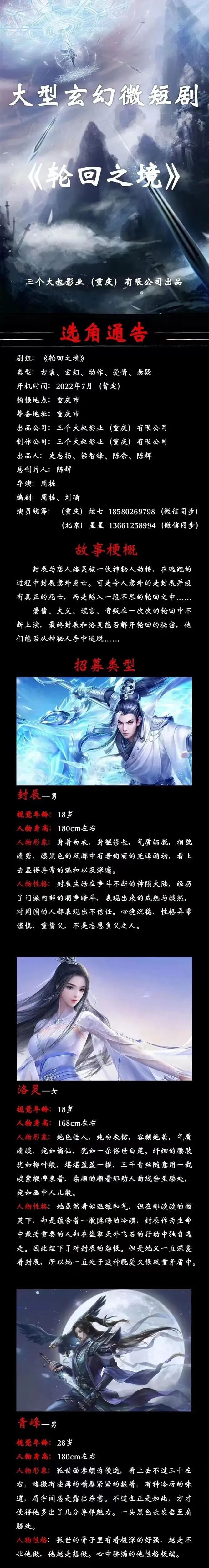 本栏目发布组讯由小编采集与业界共享,组讯如有变化请以实际情况为准。如果遇到剧组收费情况,请谨慎对待并私信官微@戏客Seeker,我们会公示问题组讯并及时处理。谢谢。