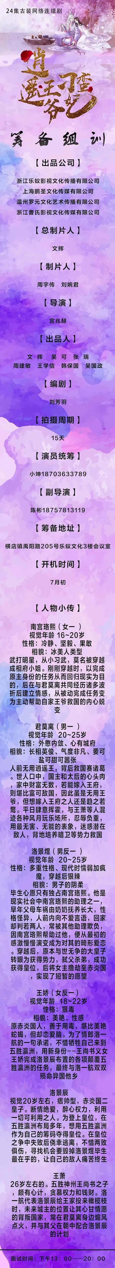短剧三部筹备,改7月初青岛拍摄。未定角色如下:龙三、上官锦、尚莹莹、莫昊飞、阿布,望各位针对性推荐。