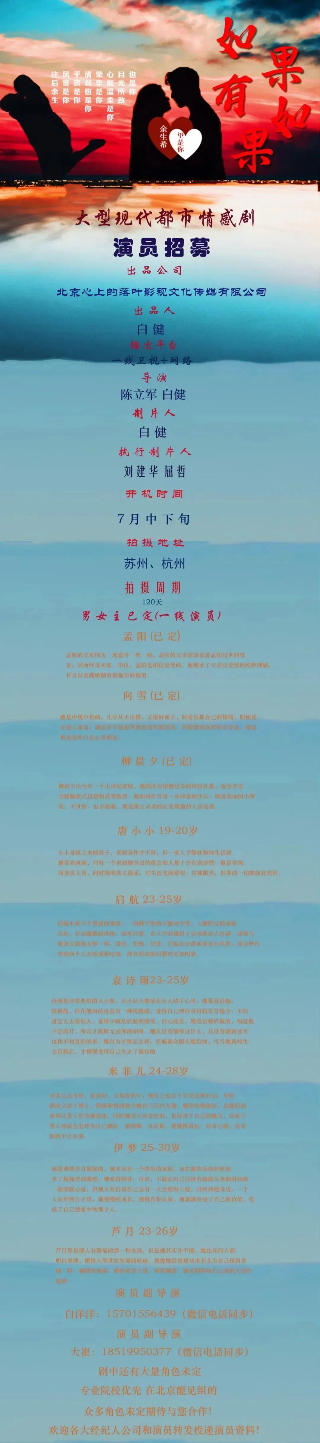 剧中角色众多,欢迎各大经纪公司及演员朋友提供资料(暂时只收资料)
