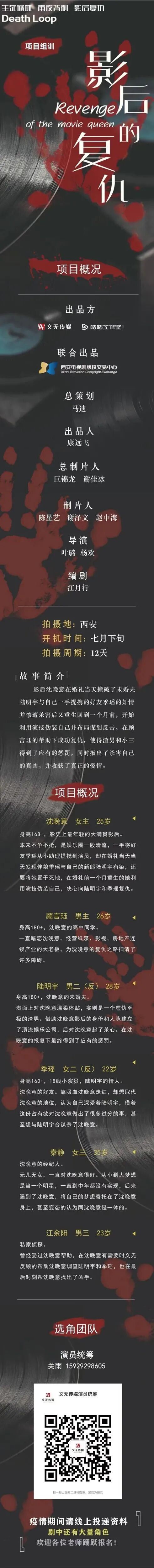 本栏目发布组讯由小编采集与业界共享,组讯如有变化请以实际情况为准。如果遇到剧组收费情况,请谨慎对待并私信官微@戏客Seeker,我们会公示问题组讯并及时处理。谢谢。