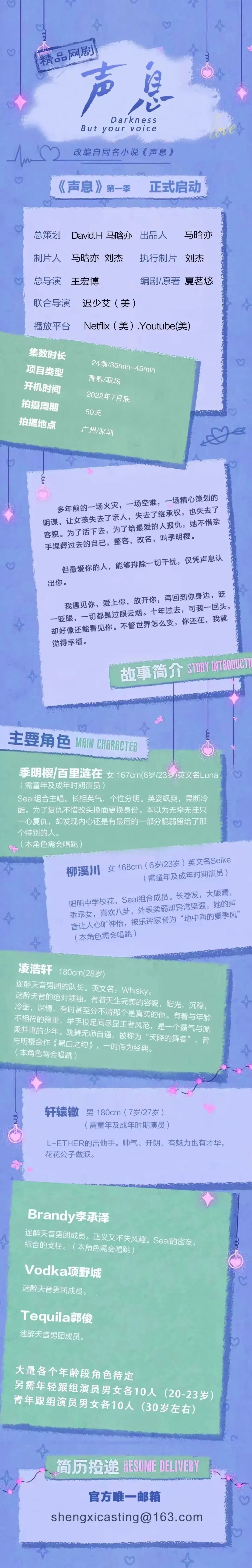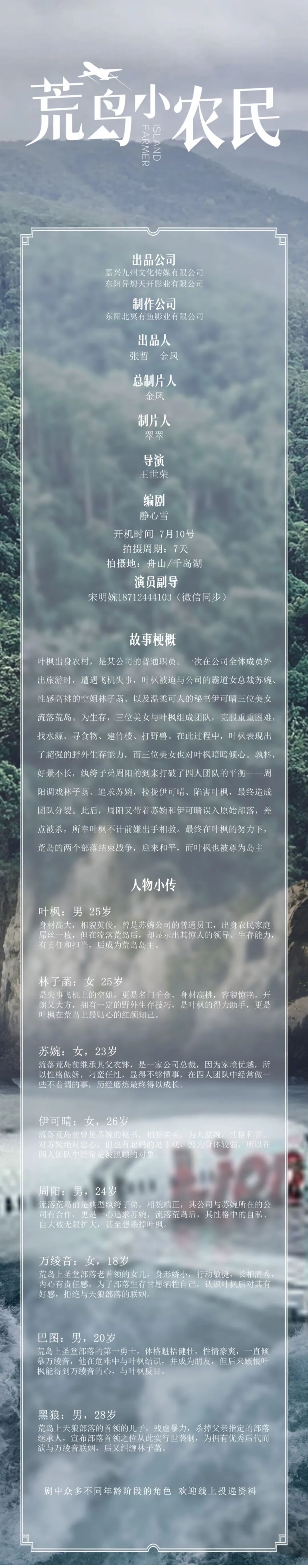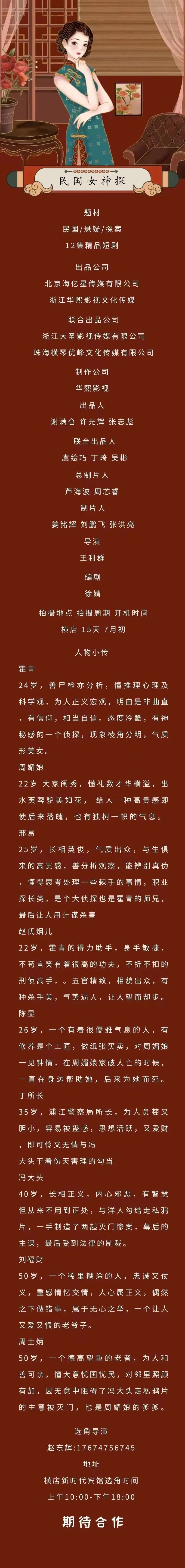 本栏目发布组讯由小编采集与业界共享,组讯如有变化请以实际情况为准。如果遇到剧组收费情况,请谨慎对待并私信官微@戏客Seeker,我们会公示问题组讯并及时处理。谢谢。