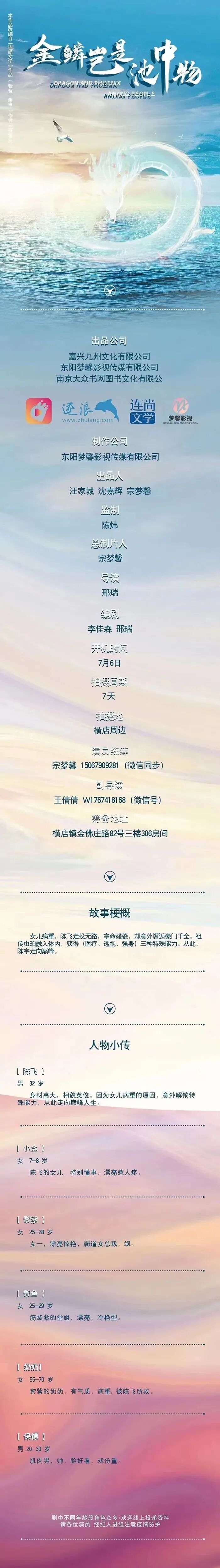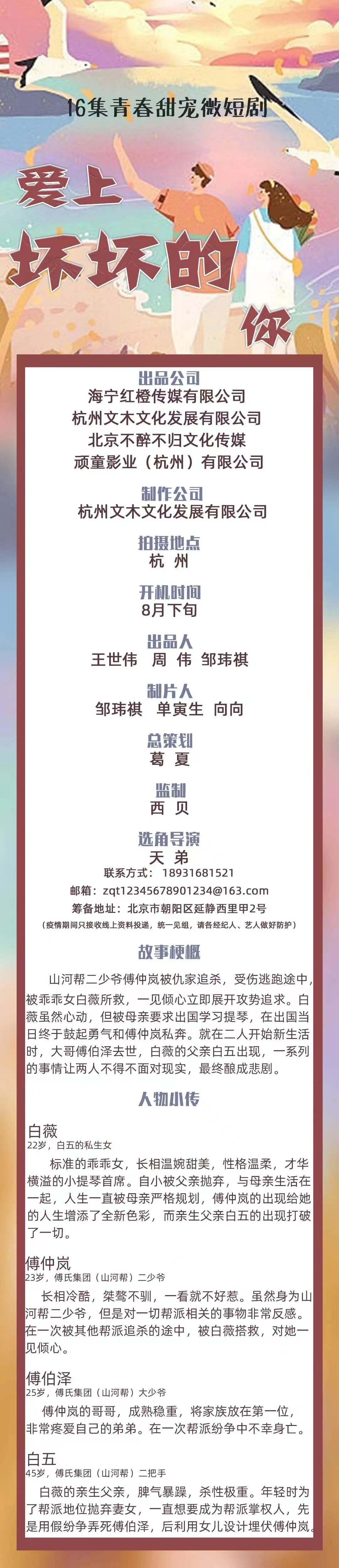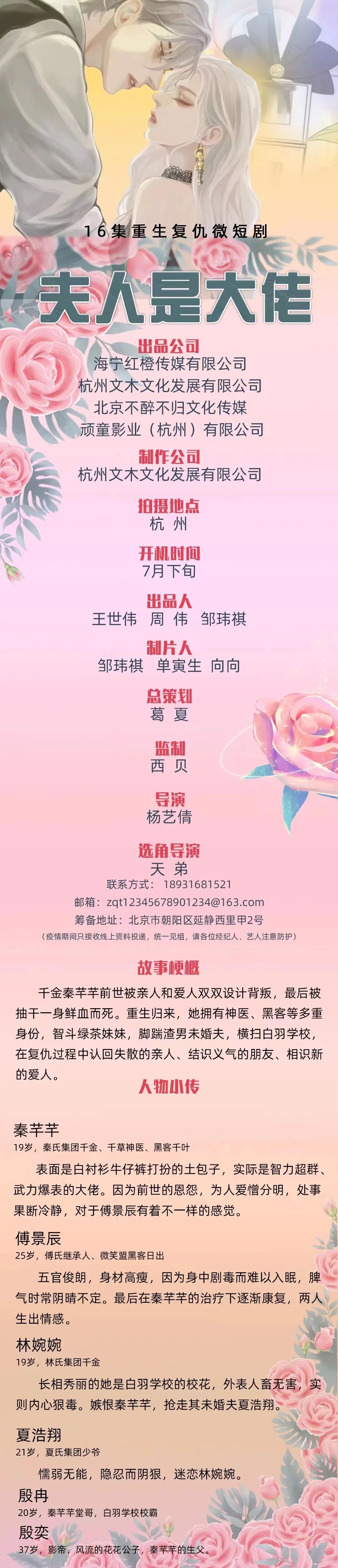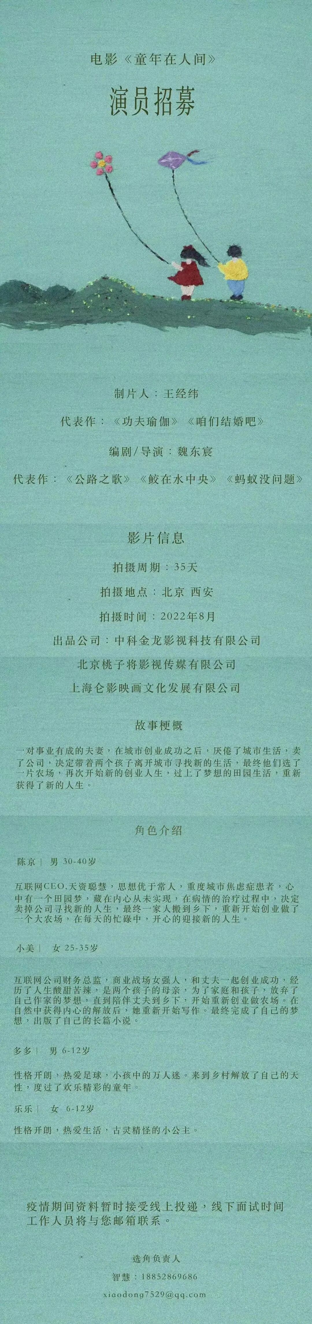 剧中不同年龄段角色众多,欢迎线上投递资料,请各位演员经纪人进组注意疫情防护