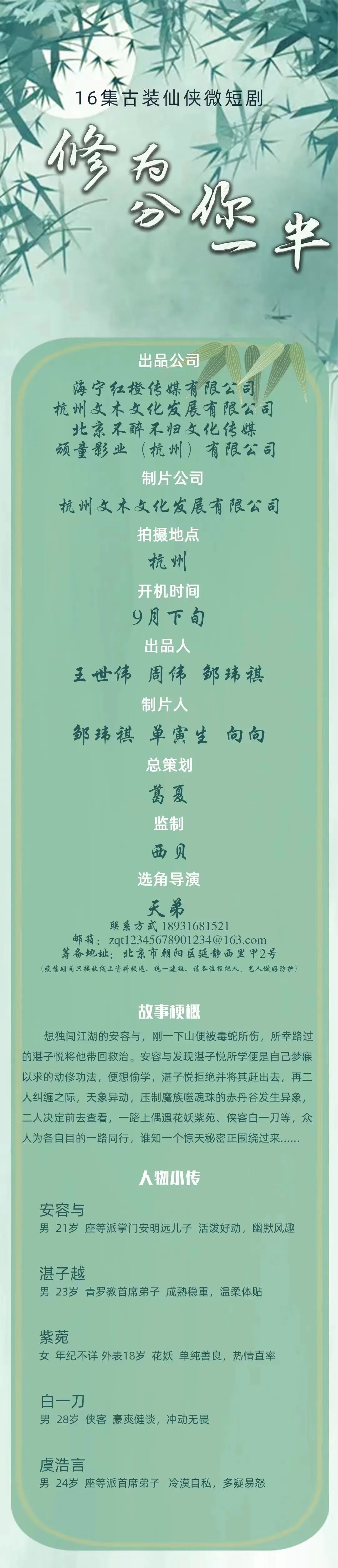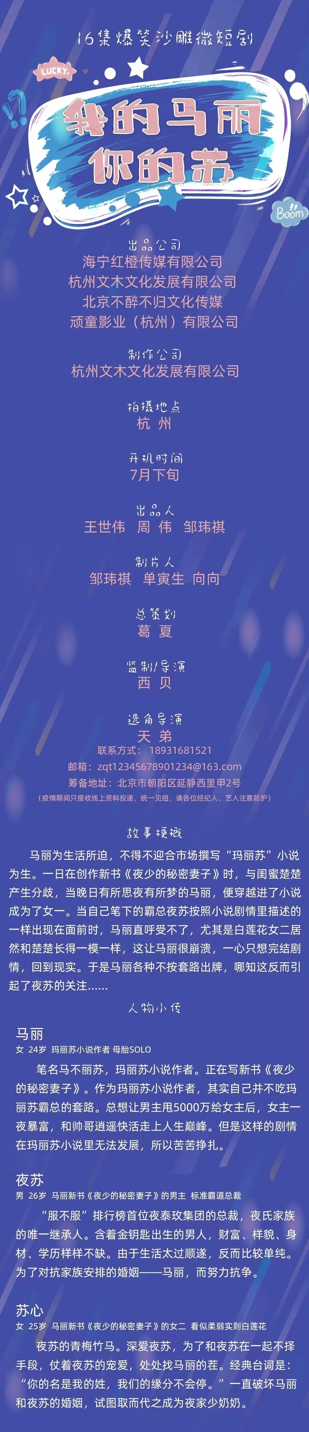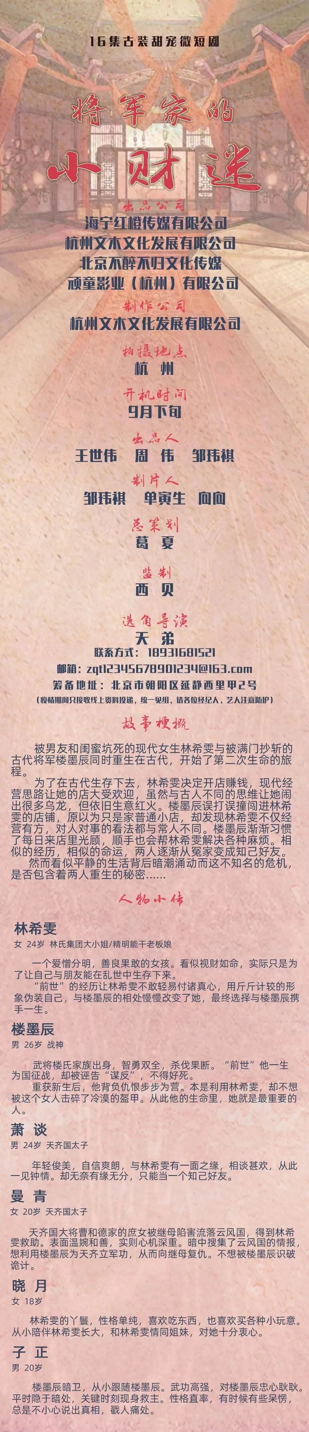 演员统筹:宗梦馨 15067909281 (微信同步 )