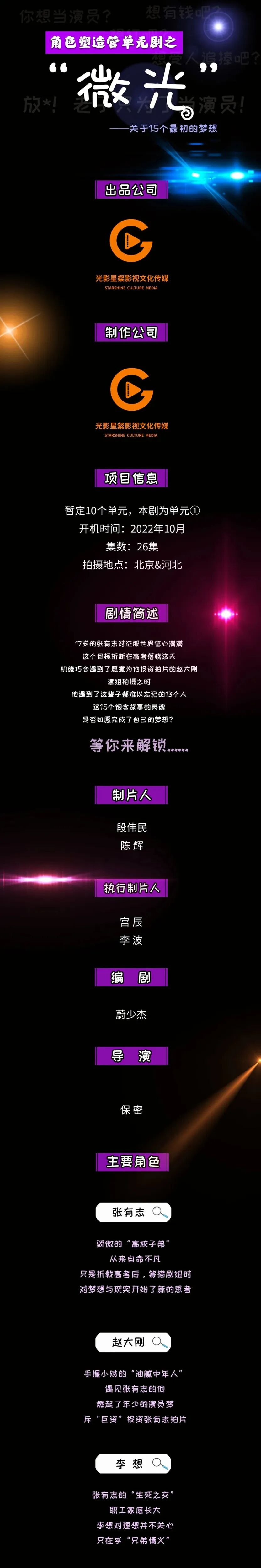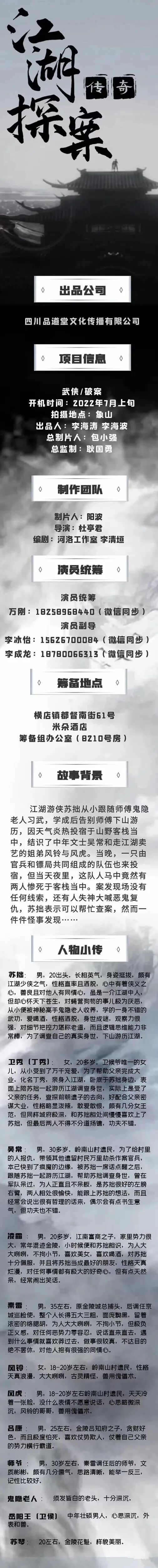 本栏目发布组讯由小编采集与业界共享,组讯如有变化请以实际情况为准。如果遇到剧组收费情况,请谨慎对待并私信官微@戏客Seeker,我们会公示问题组讯并及时处理。谢谢。