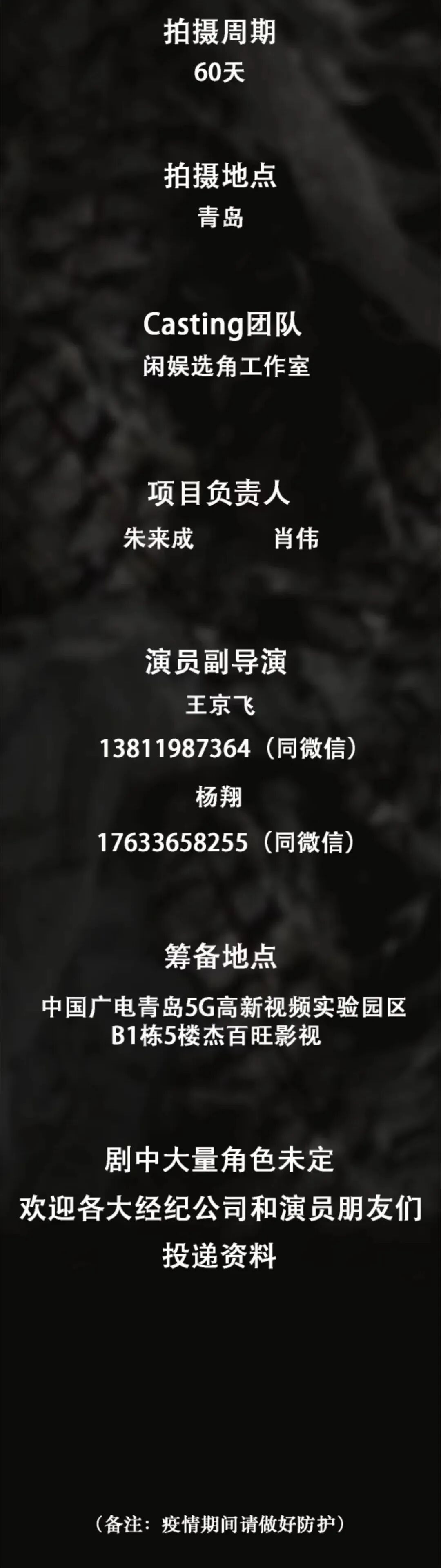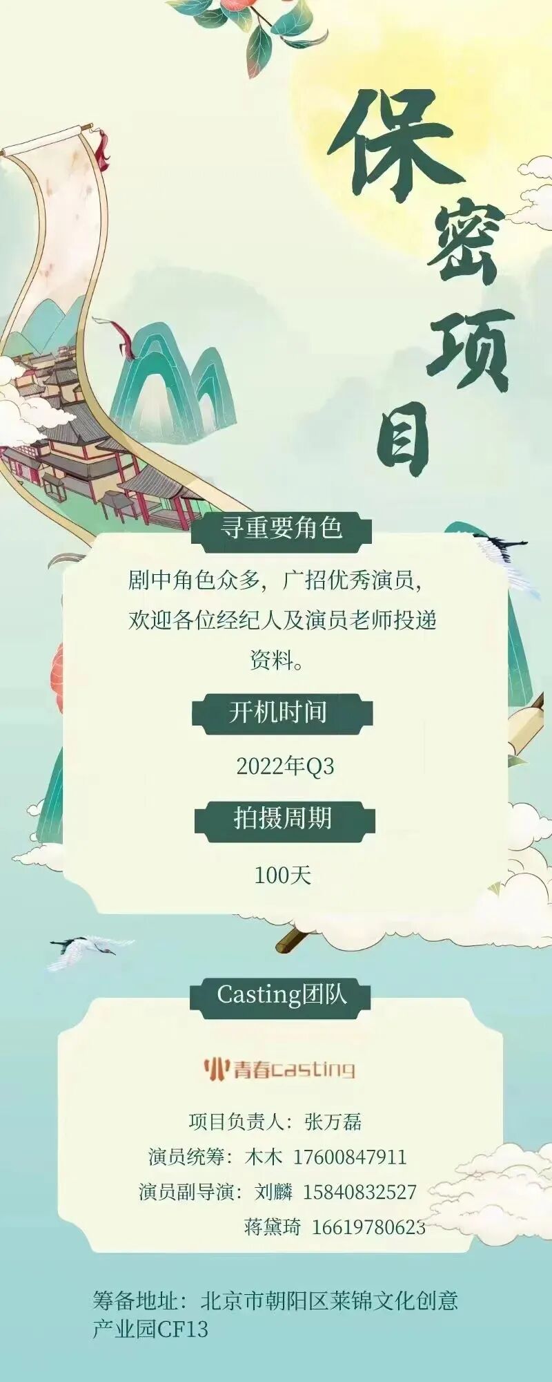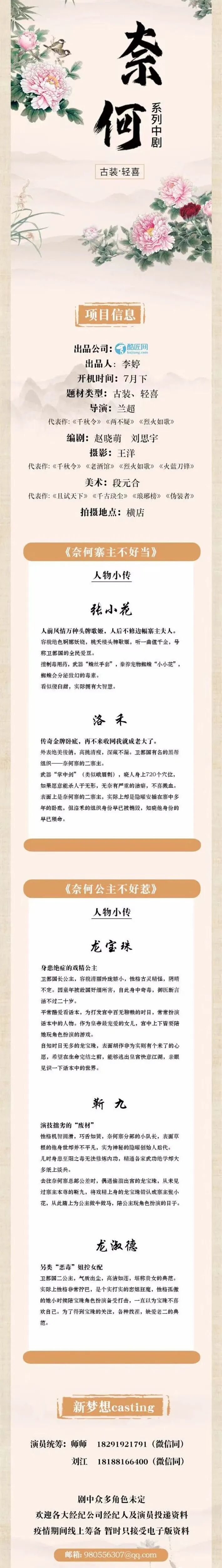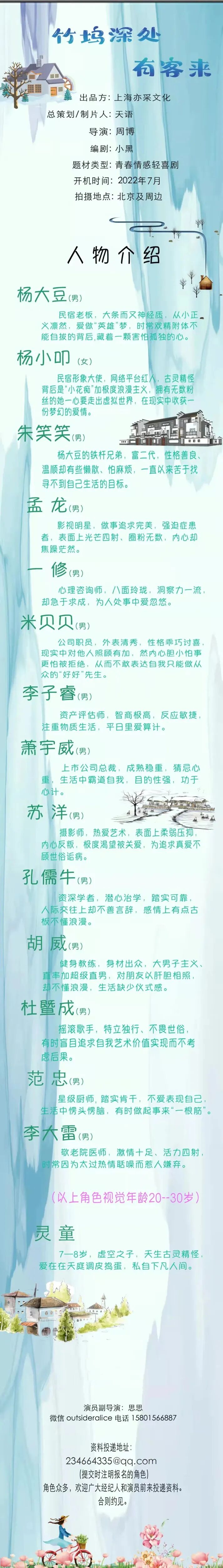 剧中大量角色未定,欢迎各大经纪公司和演员朋友们投递资料