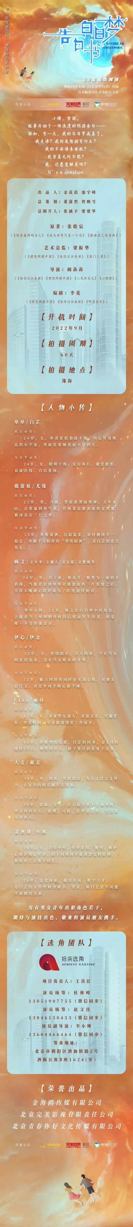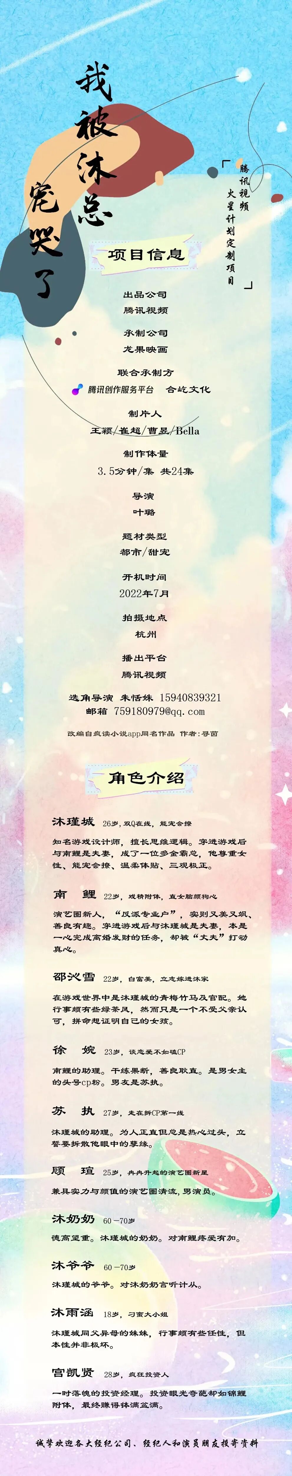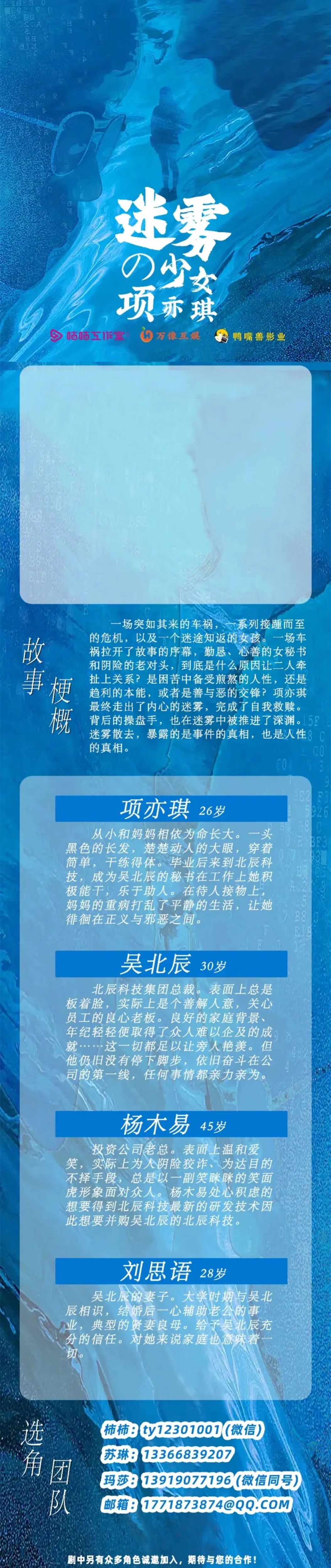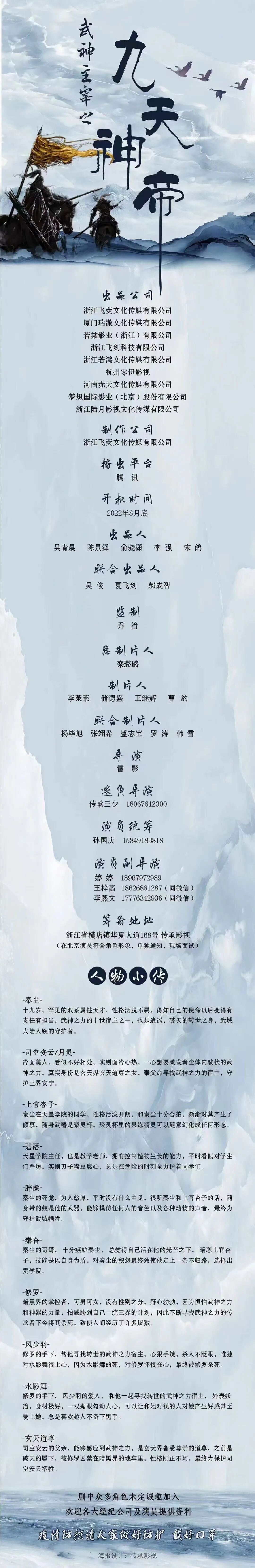 剧中大量角色未定,欢迎各大经纪公司和演员朋友们投递资料