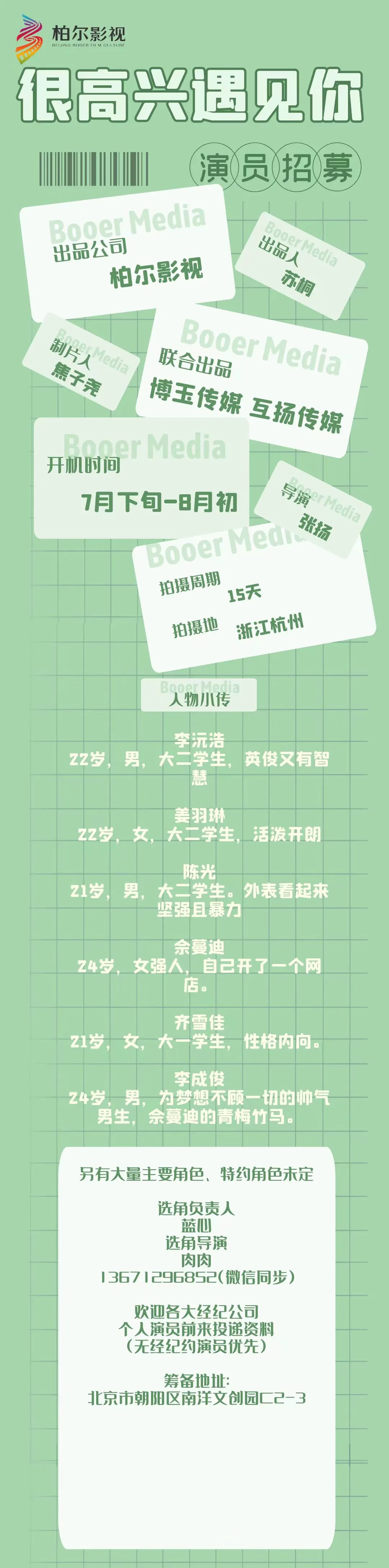 本栏目发布组讯由小编采集与业界共享,组讯如有变化请以实际情况为准。如果遇到剧组收费情况,请谨慎对待并私信官微@戏客Seeker,我们会公示问题组讯并及时处理。谢谢。