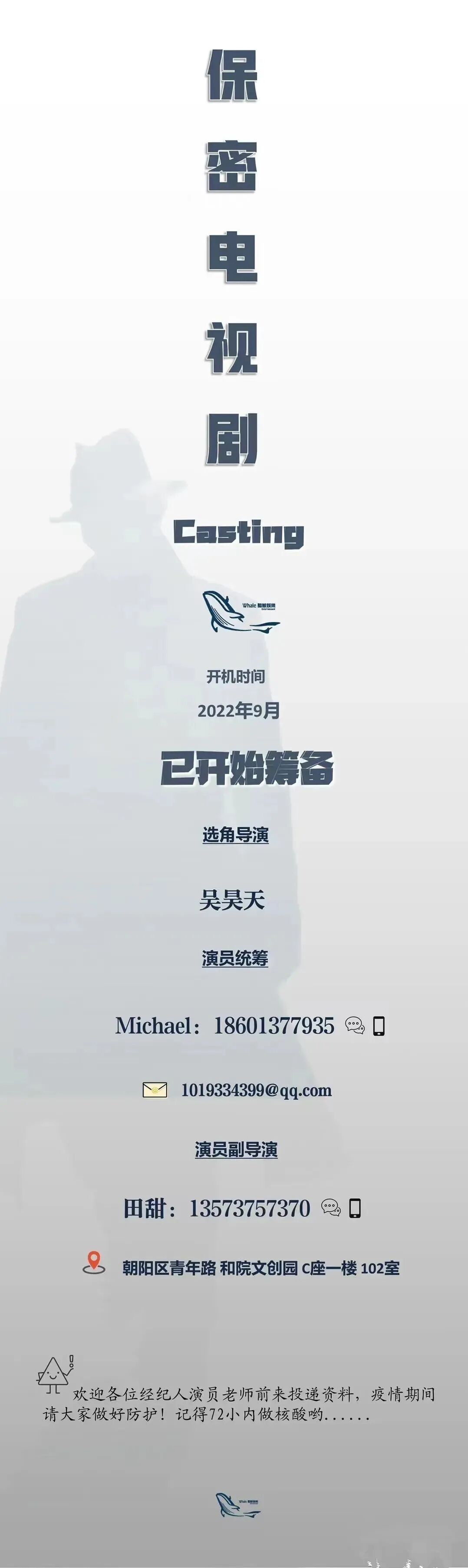 本栏目发布组讯由小编采集与业界共享,组讯如有变化请以实际情况为准。如果遇到剧组收费情况,请谨慎对待并私信官微@戏客Seeker,我们会公示问题组讯并及时处理。谢谢。